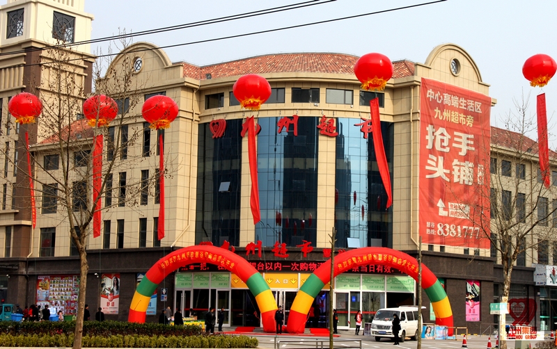 3月30日,九州超市公司慧谷領(lǐng)御店盛裝開業(yè)。該店坐落于河?xùn)|區(qū)人民大街與孝友路交匯處西北角,經(jīng)營面積近5000平方米,主營黃金珠寶、手機(jī)數(shù)碼、生鮮熟食、酒水飲料、膨化休閑、地方特產(chǎn)、日化洗滌、家居百貨、服裝鞋帽、針織床品、圖書影像、文體辦公等商品。