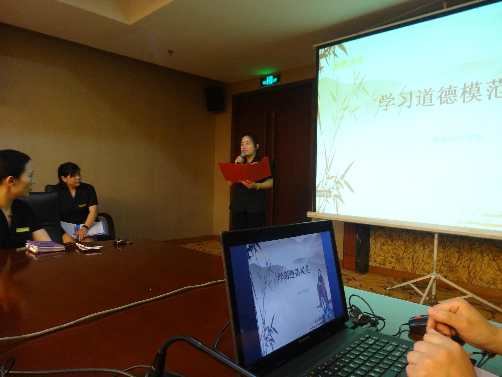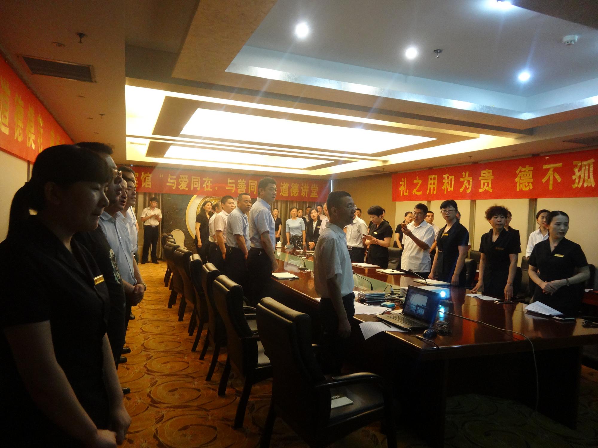 6月22日,臨沂賓館“與愛同在,與善同行”道德講堂在沂蒙路店第三會(huì)議室成功舉辦,臨沂賓館全體黨員、入黨積極分子及中層管理人員等50余人參加。 山東是孔孟故里,禮儀之邦,道德傳統(tǒng)源遠(yuǎn)流長(zhǎng),“善”是儒家文化的一個(gè)重要組成部分,臨沂賓館本期道德講堂突出“善良”這一中華民族傳統(tǒng)品德的重要權(quán)重,讓更多的人從自己做起、從身邊的小事做起,踐行善舉,傳播“崇德行善”的正能量。 本期道德講堂分為同唱道德歌曲、學(xué)習(xí)道德模范、誦讀中華經(jīng)典、談感悟發(fā)善心、行崇德禮等五個(gè)環(huán)節(jié)。本期學(xué)習(xí)的道德模范是2017年度感動(dòng)中國(guó)十大人物之一黃大年,其愛崗敬業(yè)、至誠(chéng)報(bào)國(guó)的高尚品質(zhì)讓在場(chǎng)的人感動(dòng)。然后,由臨沂賓館三名員工講述了發(fā)生在我們身邊的凡人善舉,其中沂蒙路店孫曉穎講述的是《身邊的好人——曹玉軍》,大學(xué)酒店肖瑤講述的是《愛心再接力,溫情暖人心》,開發(fā)區(qū)店孟靈芝講述的是《讓我們?cè)賹W(xué)張記磊》,從身邊小事中折射出的善良光輝給予了在場(chǎng)的每一個(gè)人極大的感染。誦讀中華經(jīng)典環(huán)節(jié),選取《論語》中的名句“禮之用和為貴,德不孤必有鄰”,讓大家共同感受到了儒家文化中對(duì)于道德的篤信推崇。唱過道德歌、看過道德視頻、聽過道德故事、誦讀了中華經(jīng)典,大家感悟良多并進(jìn)行了分享,也收獲了一份小禮品。最后,在行崇德禮之后,本期道德講堂圓滿結(jié)束。 本期道德講堂的成功舉辦,在弘揚(yáng)中華民族傳統(tǒng)文化中的“善”文化的同時(shí),讓每一位參與其中的人在潛移默化中感受到道德的力量,并以發(fā)生在我們身邊的好人好事為典型,呼吁更多的人參與到“發(fā)善心,行善舉”的行動(dòng)中,傳遞社會(huì)正能量,為我市創(chuàng)建全國(guó)文明城市營(yíng)造濃厚氛圍。(臨沂賓館 王本強(qiáng))