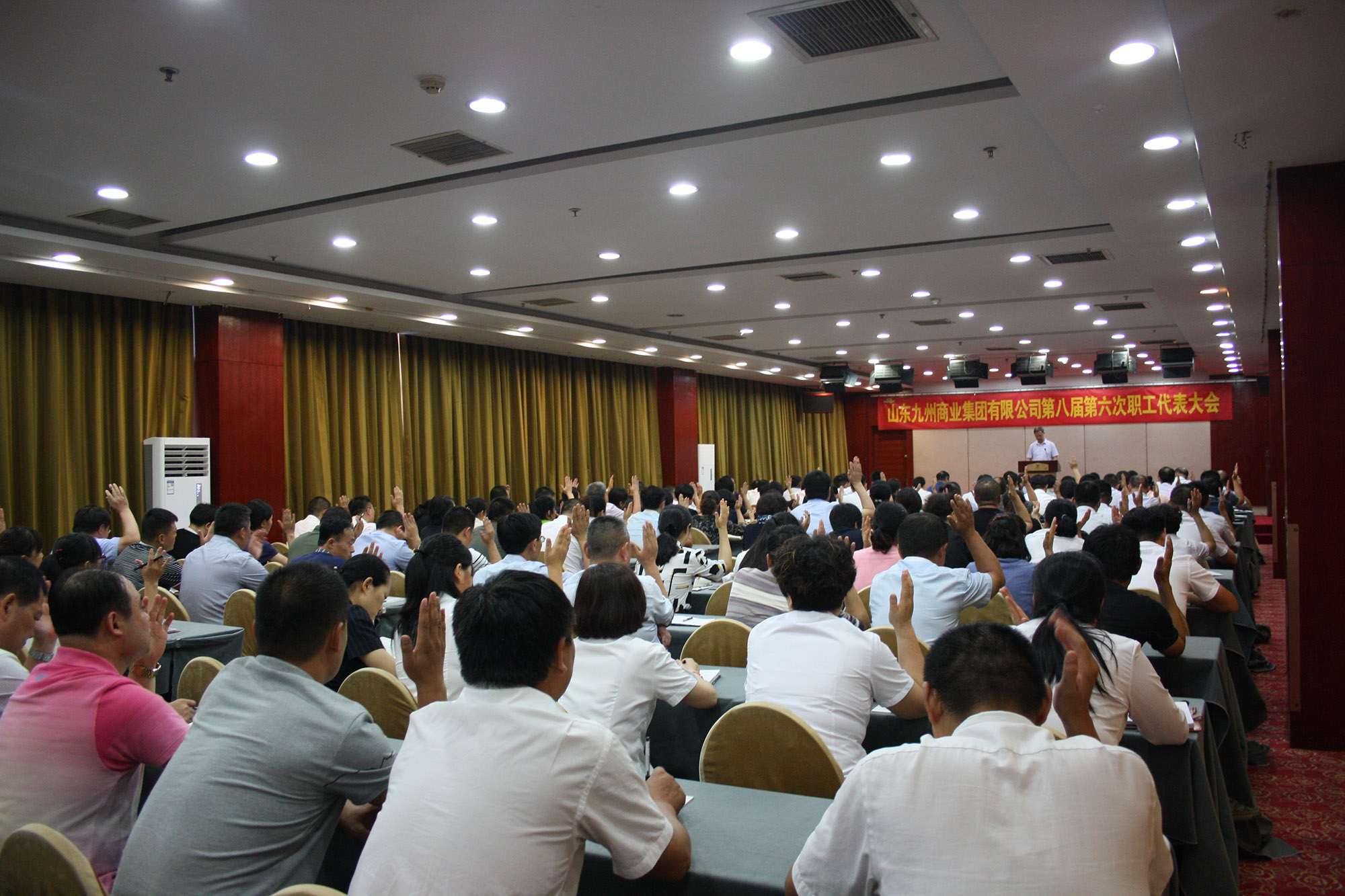 7月23日,山東九州商業(yè)集團(tuán)有限公司第八屆第六次職工代表大會在臨沂賓館召開,來自各單位的128位職工代表參加會議,集團(tuán)工會主席劉延?xùn)|主持會議。 會上,集團(tuán)董事長兼總經(jīng)理?xiàng)钣罇|向各位職工代表通報(bào)了集團(tuán)上半年各單位、各經(jīng)營部位主要經(jīng)營指標(biāo)完成情況、費(fèi)用開支情況、基建投資情況和招待費(fèi)使用情況,并對各單位和經(jīng)營部位的經(jīng)營管理工作進(jìn)行了分析和點(diǎn)評。楊永東指出,企業(yè)的發(fā)展要堅(jiān)持以提高經(jīng)濟(jì)效益為中心,圍繞經(jīng)營發(fā)展開展各項(xiàng)工作,各單位要認(rèn)清企業(yè)發(fā)展的內(nèi)外經(jīng)營環(huán)境,正視企業(yè)發(fā)展存在的問題和不足,堅(jiān)定信心,努力破除阻礙經(jīng)營發(fā)展的不利因素,促進(jìn)經(jīng)濟(jì)效益不斷提升。 會上,全體職工舉手表決通過了《工資集體協(xié)商協(xié)議》;投票通過了《管理人員行為守則》《培訓(xùn)費(fèi)報(bào)銷管理規(guī)定》《員工退休手續(xù)辦理流程》《培訓(xùn)管理制度》《員工退休返聘管理標(biāo)準(zhǔn)》《駐外交通補(bǔ)貼管理辦法》《資產(chǎn)管理標(biāo)準(zhǔn)》《工程項(xiàng)目建設(shè)周期管理辦法》《電梯設(shè)備交接驗(yàn)收指引》《建設(shè)項(xiàng)目交接驗(yàn)收流程指引》《評先樹優(yōu)管理規(guī)定》《九州集團(tuán)電商平臺運(yùn)營流程》12個(gè)標(biāo)準(zhǔn)制度。 會議要求全體職工代表要立足自身,尋求自我提升,努力做合格的職工代表,充分發(fā)揮橋梁紐帶作用,同時(shí)要牢記職責(zé)和使命,充分調(diào)動(dòng)員工工作熱情,發(fā)揮員工的積極性和創(chuàng)造性,團(tuán)結(jié)全體員工為全面完成集團(tuán)2018年度工作目標(biāo)貢獻(xiàn)聰明才智。(集團(tuán)辦公室 劉傳芳)