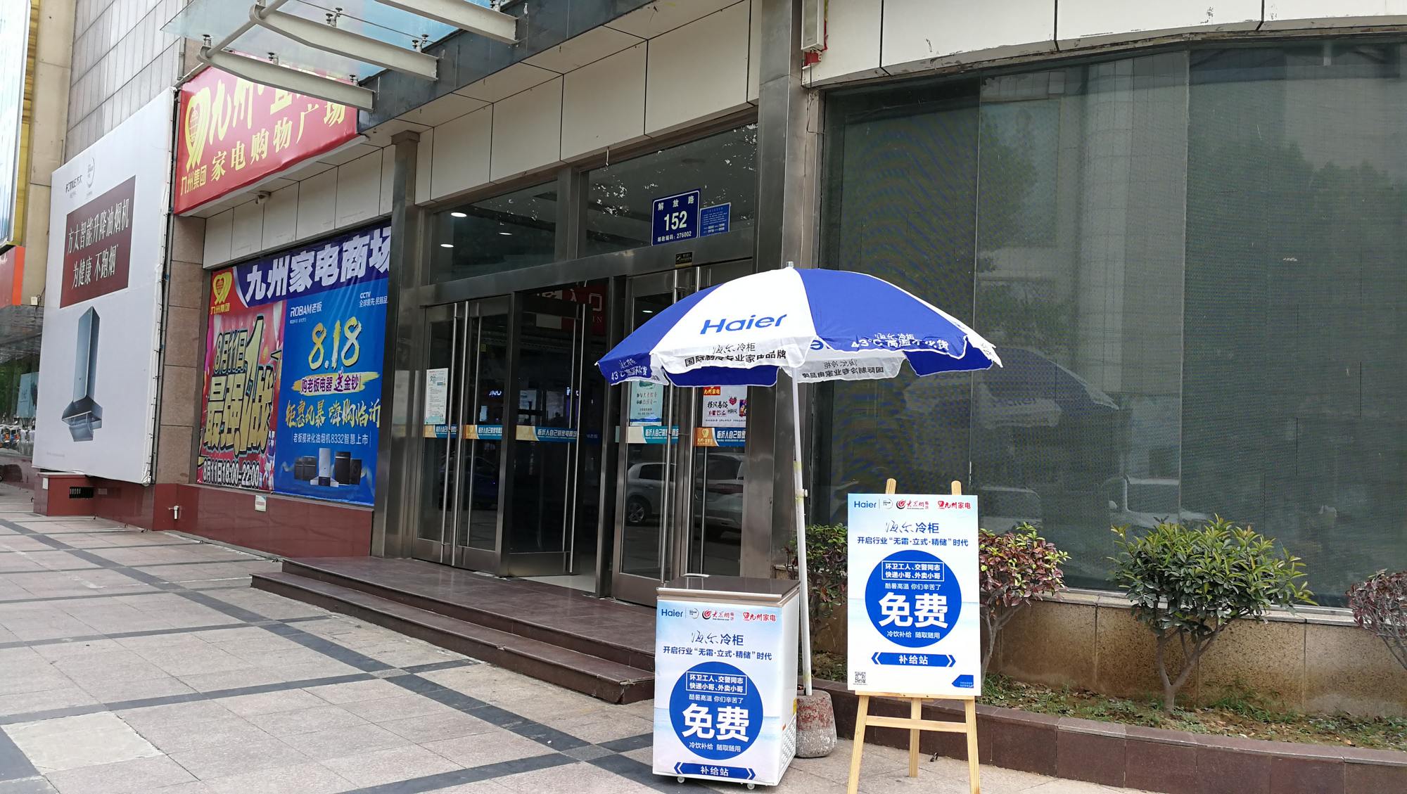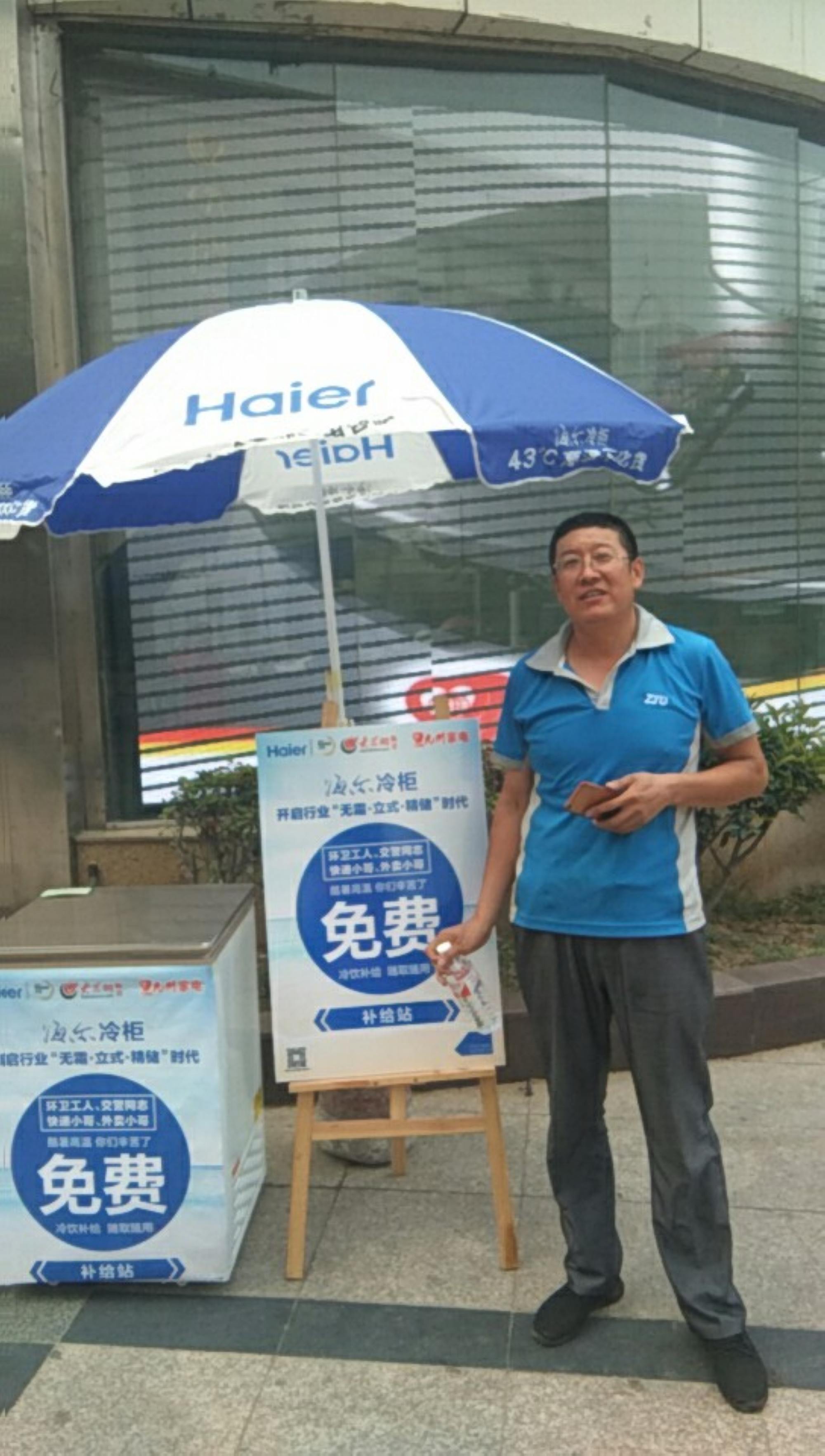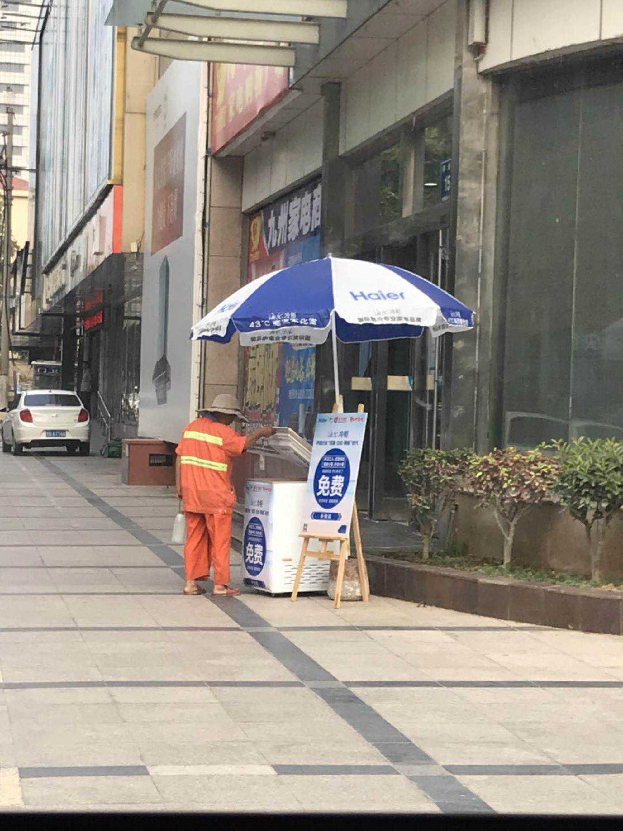 九州家電在解放路店門前設(shè)立免費(fèi)冷飲補(bǔ)給站