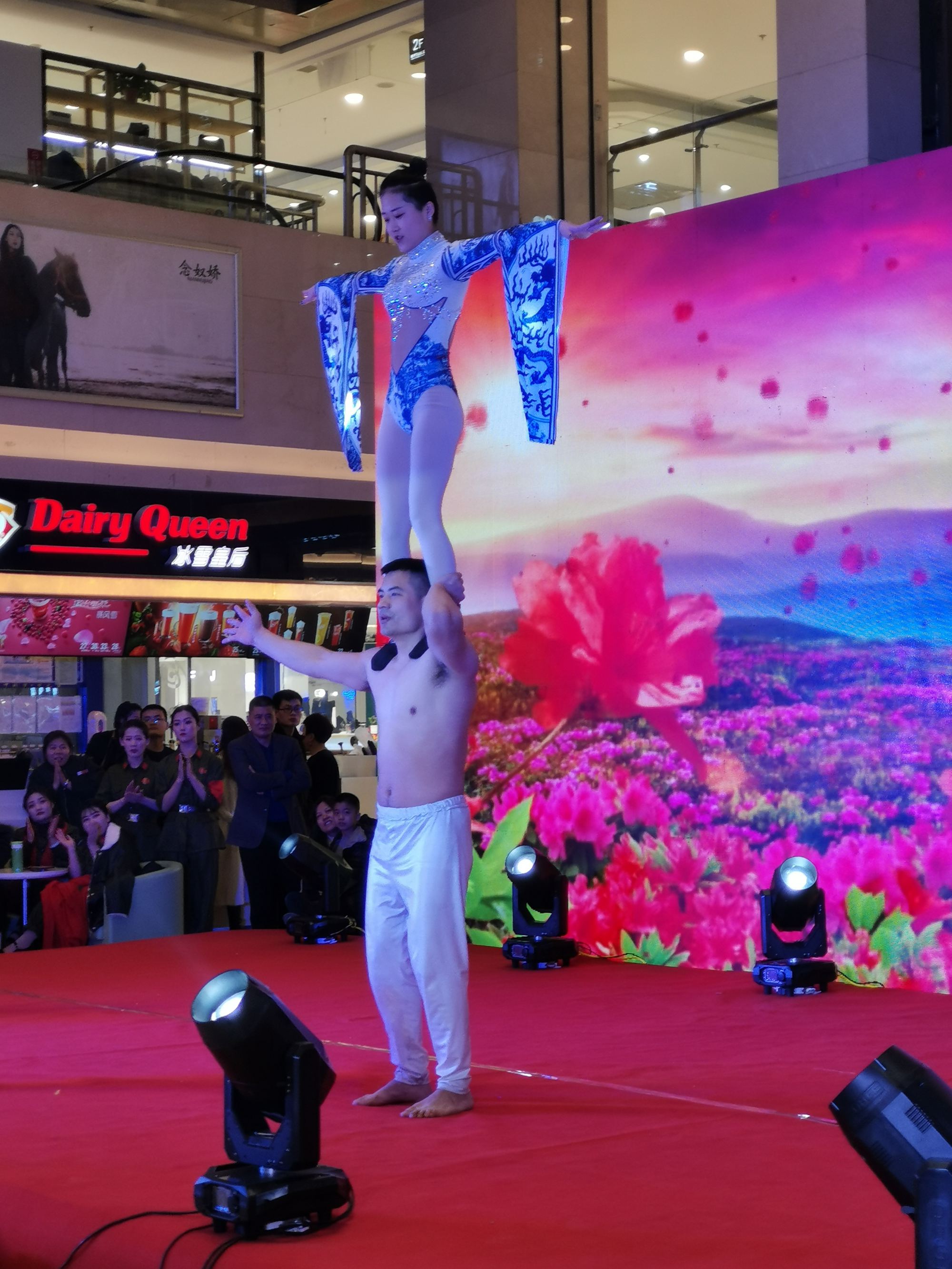 晚會(huì)由大廈及演藝公司精心準(zhǔn)備的11個(gè)節(jié)目組成,形式多樣,內(nèi)容精彩,為受邀的金卡會(huì)員及現(xiàn)場(chǎng)顧客展示了九州人朝氣蓬勃、奮發(fā)向上的精神風(fēng)貌。晚會(huì)在女子樂坊曲藝表演中拉開序幕,歌曲《春天的芭蕾》《我只在乎你》以優(yōu)美的旋律征服著現(xiàn)場(chǎng)觀眾的耳朵;雜技《男女力量》用力量的展示贏得了現(xiàn)場(chǎng)觀眾的陣陣掌聲;川劇《變臉》更是讓人匪夷所思,一張臉剎那間就可以千變?nèi)f化;薩克斯獨(dú)奏《回家》《今日痛飲慶功酒》彰顯了樂器的魅力;舞蹈《中國(guó)脊梁》、《風(fēng)箏誤》《共圓中國(guó)夢(mèng)》《絨花》更是給現(xiàn)場(chǎng)觀眾帶來了一場(chǎng)場(chǎng)優(yōu)美的視覺盛宴。經(jīng)過近兩小時(shí)的精彩演出,晚會(huì)在節(jié)奏感十足的快板舞《九州贊》中落下帷幕。