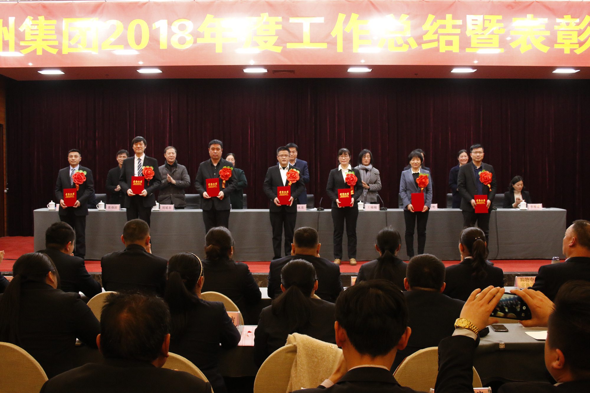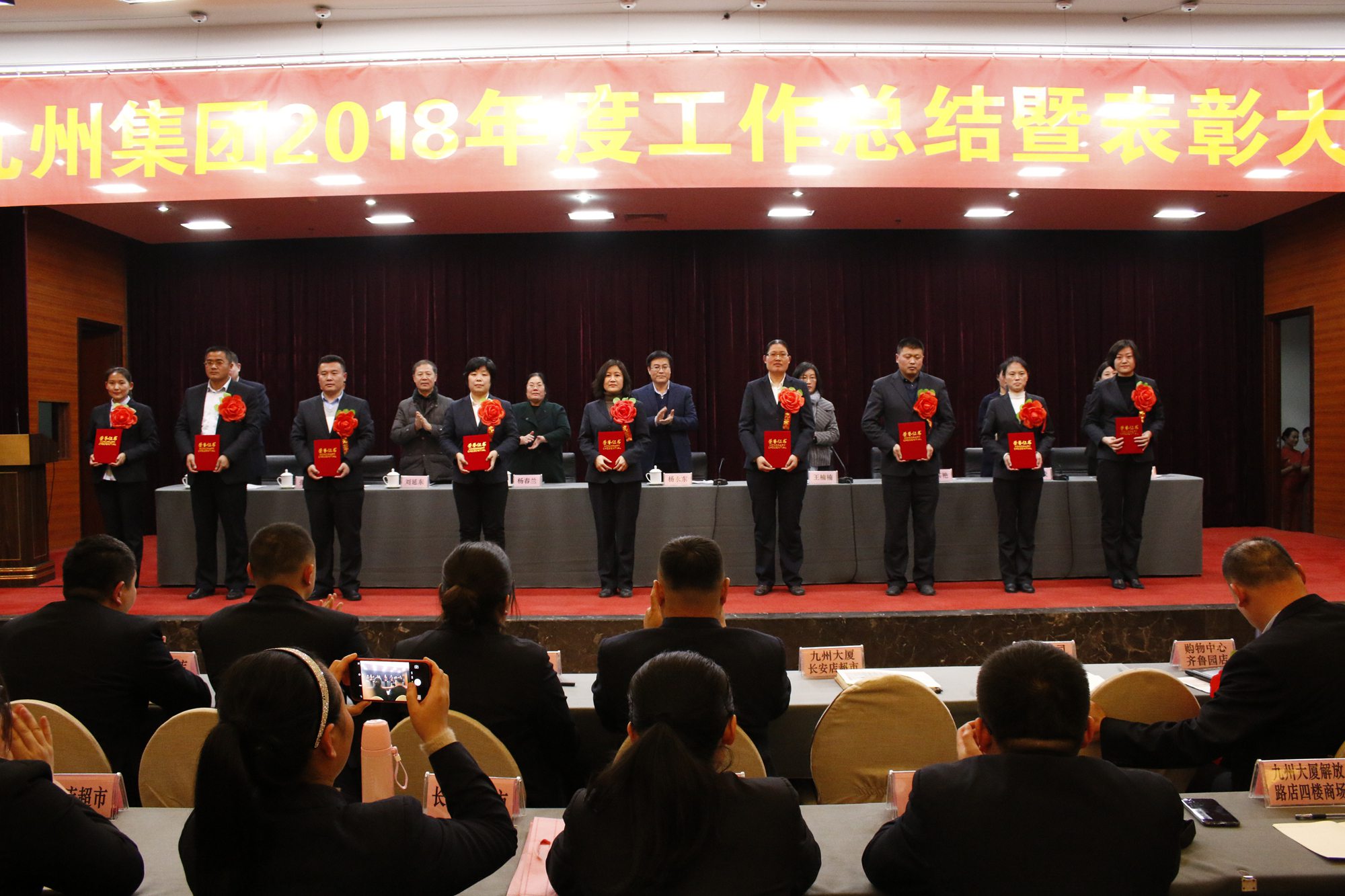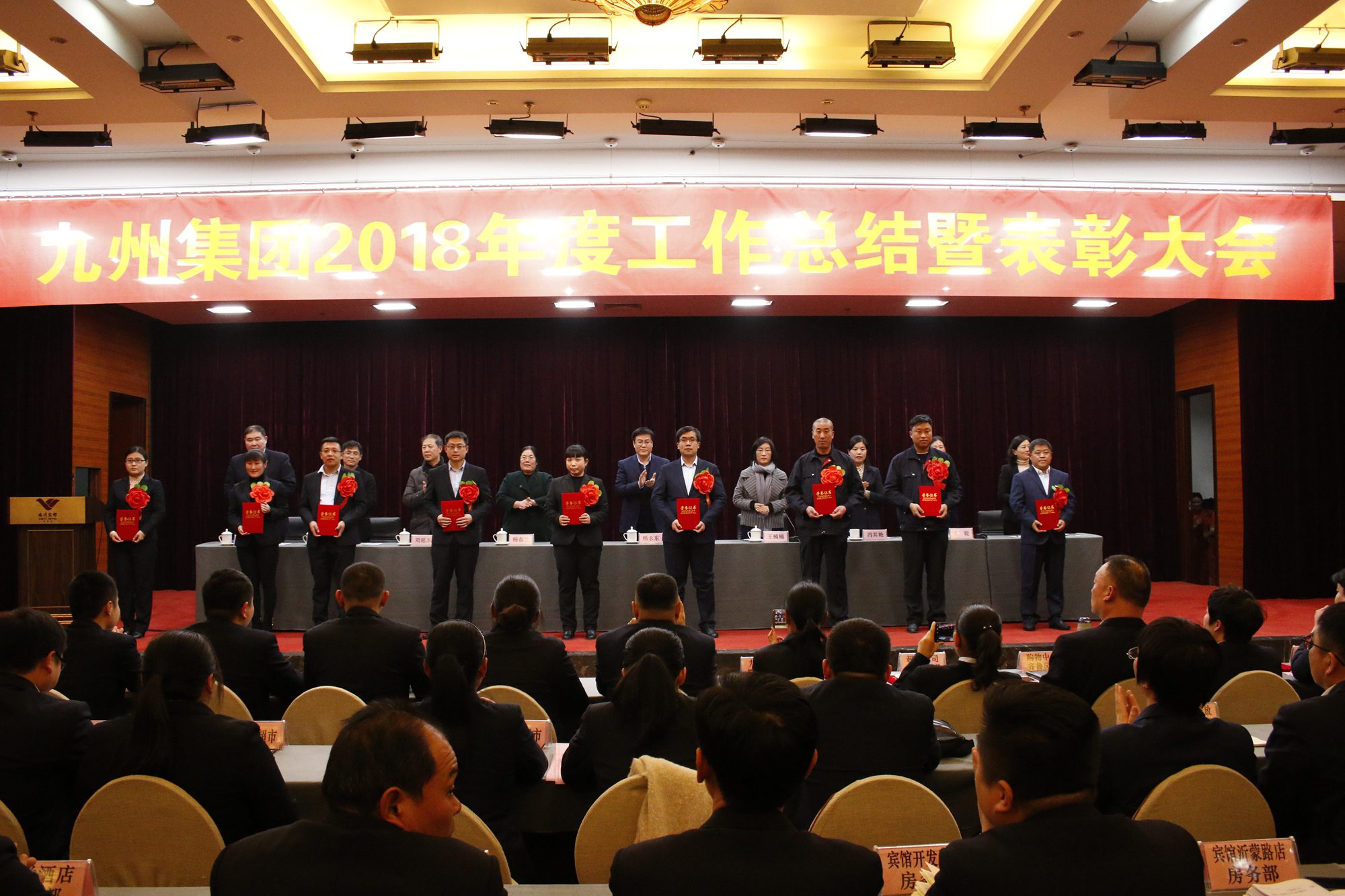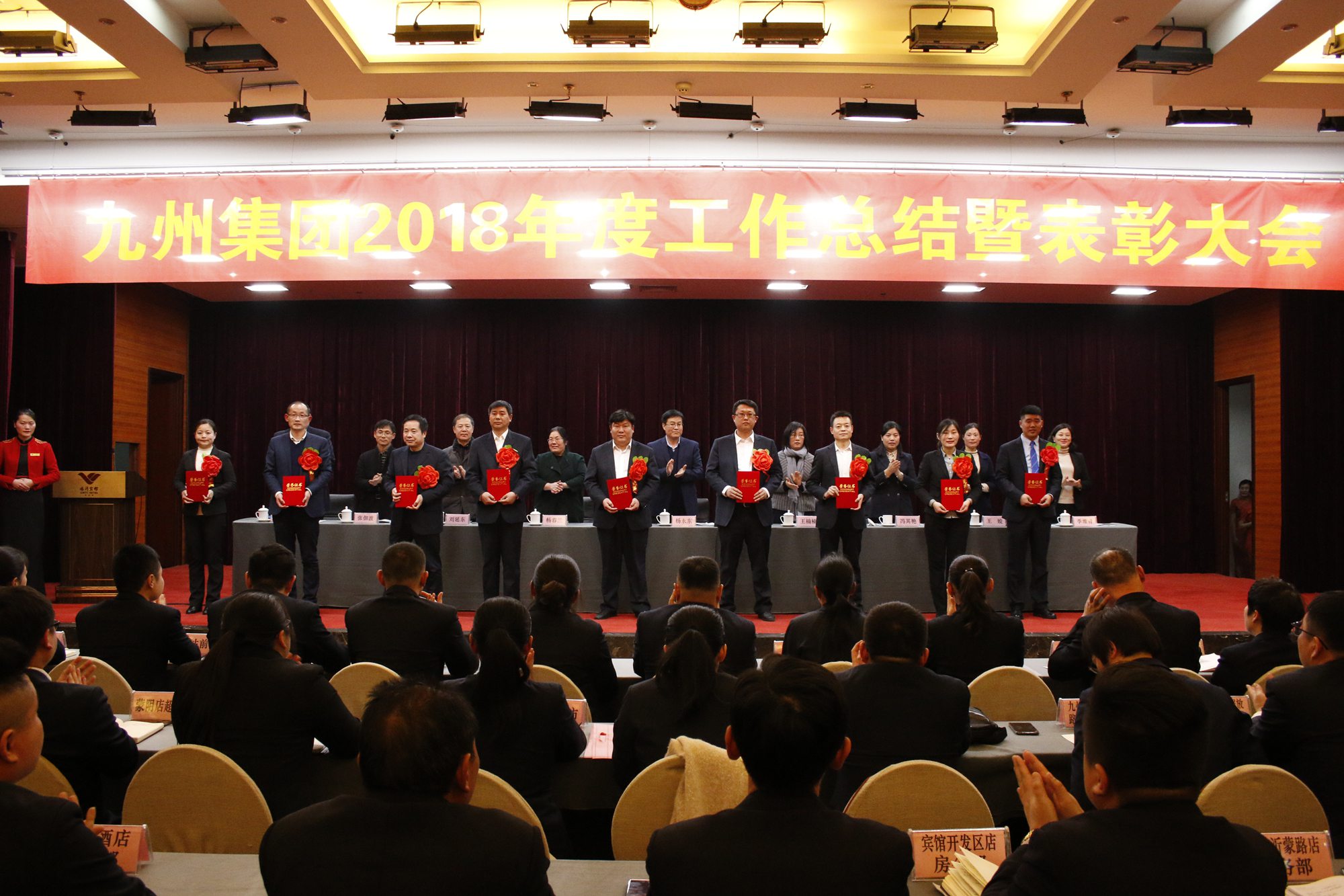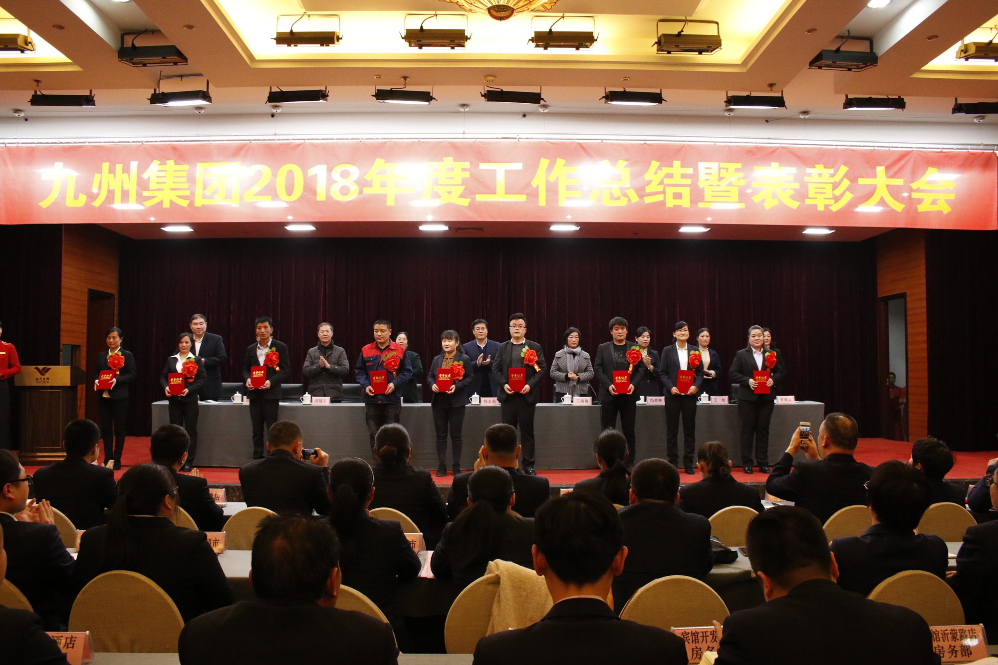 2月25日,九州集團(tuán)2018年度工作總結(jié)暨表彰大會(huì)在臨沂賓館隆重召開。大會(huì)總結(jié)成績(jī),表彰先進(jìn),安排部署新年度工作任務(wù)。集團(tuán)領(lǐng)導(dǎo),各經(jīng)營(yíng)單位班子成員、部門負(fù)責(zé)人,先進(jìn)集體和優(yōu)秀個(gè)人代表400余人參加大會(huì)。董事長(zhǎng)兼總經(jīng)理?xiàng)钣罇|在會(huì)上作集團(tuán)工作報(bào)告、黨委副書記王姣宣讀表彰決定。會(huì)議由黨委書記王楠楠主持。