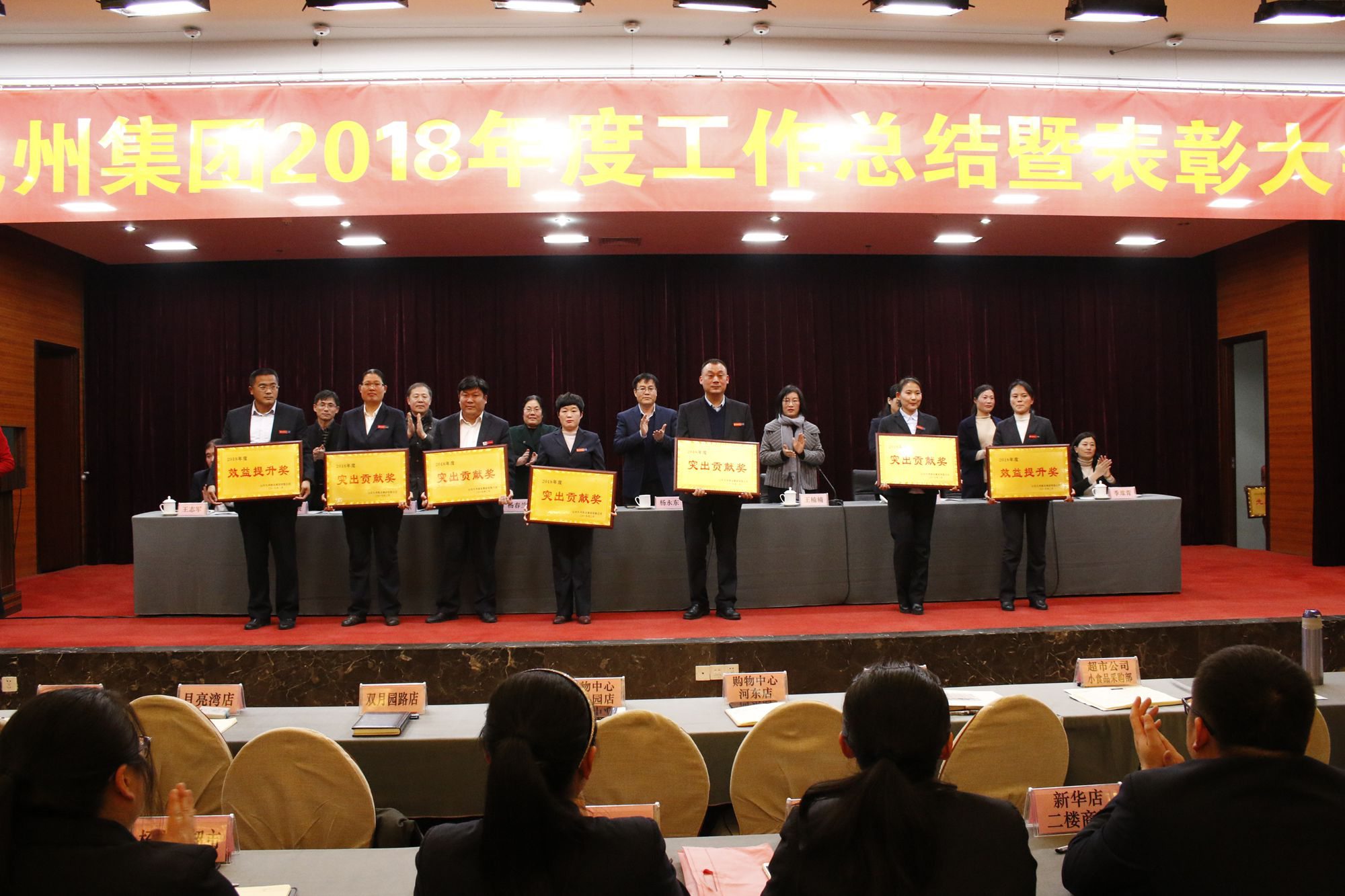 會(huì)上,集團(tuán)對(duì)超市公司購物中心河?xùn)|店、超市公司購物中心齊魯園店、超市公司小食品采購部、九州大廈楊莊店超市、九州家電海爾采購部等5個(gè)“突出貢獻(xiàn)獎(jiǎng)”獲獎(jiǎng)部位,九州大廈長(zhǎng)安店和超市公司九州冷庫兩個(gè)“效益提升獎(jiǎng)”獲獎(jiǎng)部位,42個(gè)“先進(jìn)集體”獲獎(jiǎng)部位,35名“優(yōu)秀管理人員”,23名“崗位標(biāo)兵”,16名“銷售之星”和309名“優(yōu)秀員工”進(jìn)行了通報(bào)表彰。這次受表彰的先進(jìn)集體和優(yōu)秀個(gè)人,一年來緊緊圍繞企業(yè)中心工作,勇于擔(dān)當(dāng),拼搏進(jìn)取,為企業(yè)三個(gè)文明建設(shè)做出了積極貢獻(xiàn)。集團(tuán)要求全體員工以受表彰的先進(jìn)為榜樣,立足本職,積極進(jìn)取,努力提高業(yè)務(wù)技能水平和綜合素質(zhì),為企業(yè)加快發(fā)展做貢獻(xiàn)。