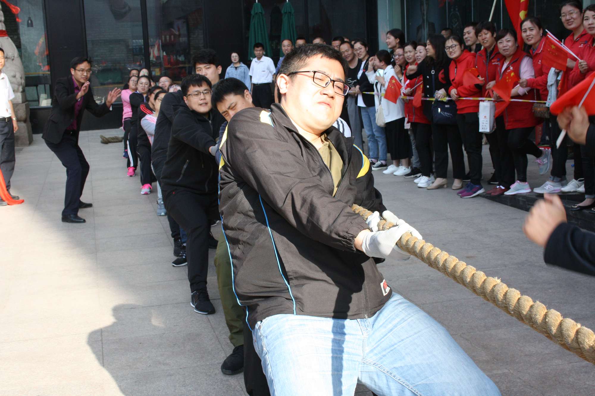 集團運動會拔河比賽項目在九州大廈門前廣場舉行