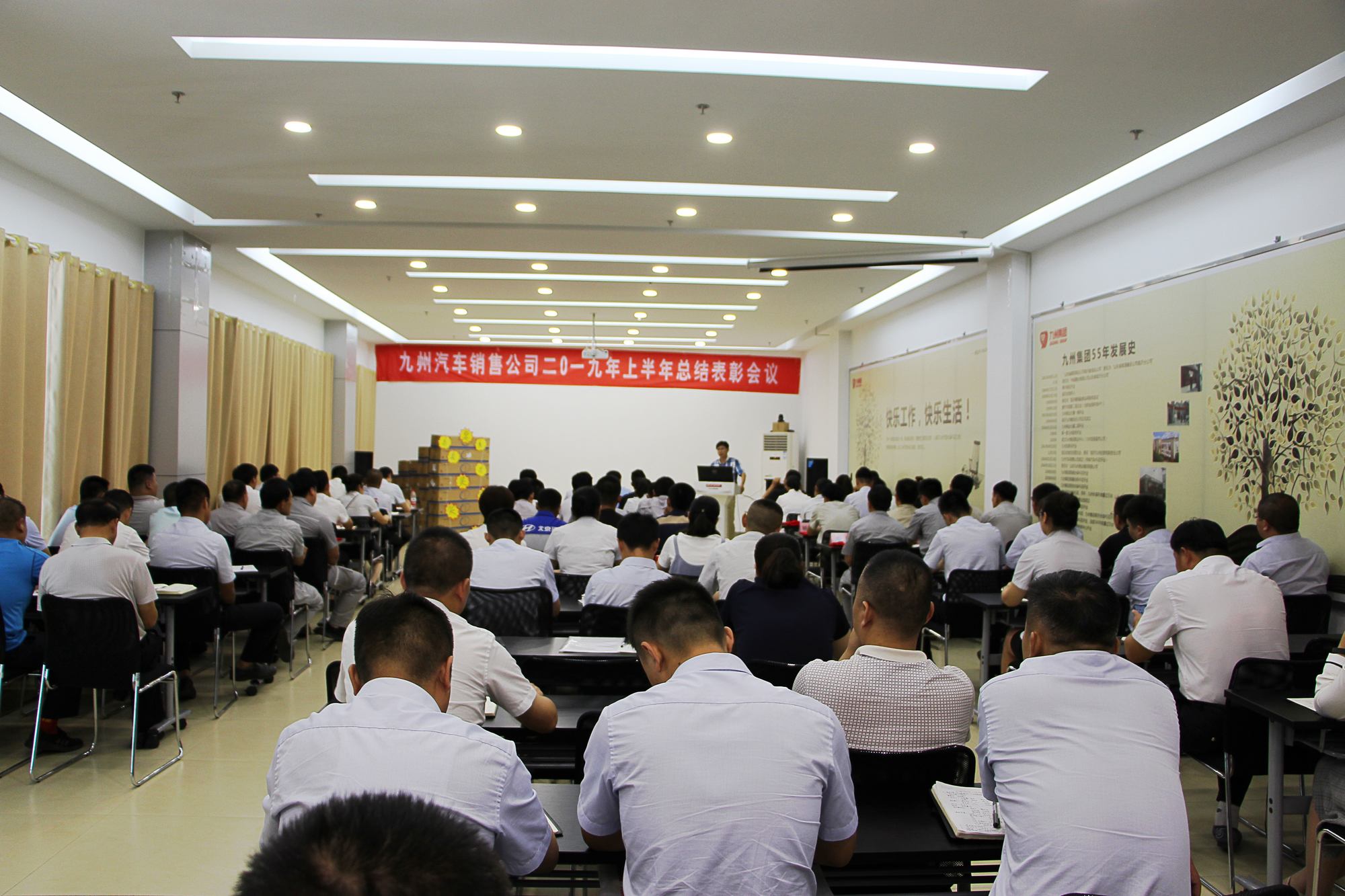 7月26日上午,汽貿(mào)公司在大型維修中心會(huì)議室召開(kāi)2019年度上半年總結(jié)表彰會(huì)議,公司領(lǐng)導(dǎo)班子、各4S店核心管理人員、行政科室負(fù)責(zé)人、全體黨員、受表彰的優(yōu)秀個(gè)人和優(yōu)秀團(tuán)體等參加了會(huì)議。 會(huì)上,公司運(yùn)營(yíng)部經(jīng)理孫香志通報(bào)了各4S店上半年運(yùn)營(yíng)情況、公司月度檢查情況及核心管理人員考評(píng)情況;財(cái)務(wù)部經(jīng)理?xiàng)羁∠纪▓?bào)了上半年費(fèi)用控制情況。并對(duì)2019年上半年涌現(xiàn)出的優(yōu)秀個(gè)人和優(yōu)秀團(tuán)體進(jìn)行了表彰。 會(huì)議最后,汽貿(mào)公司總經(jīng)理張佃波做了總結(jié)發(fā)言:一是對(duì)上半年的工作進(jìn)行了全面、客觀的總結(jié),對(duì)廣大干部職工的工作付出給予了肯定;二是對(duì)下半年工作進(jìn)行了部署和安排,明確了“穩(wěn)增長(zhǎng)、甩包袱、控費(fèi)用、活下去”的十二字方針和下半年十項(xiàng)重點(diǎn)工作,理清了發(fā)展思路,堅(jiān)定了全員信心;三是分享了讀書(shū)心得體會(huì),要求管理人員充分調(diào)動(dòng)廣大員工的積極性和創(chuàng)造性,發(fā)揮民主集中制原則,建立和諧穩(wěn)定的上下級(jí)關(guān)系,提高團(tuán)隊(duì)執(zhí)行力,做好“誠(chéng)信九州”這一品牌。(文/孟慶林 圖/侯曉成)