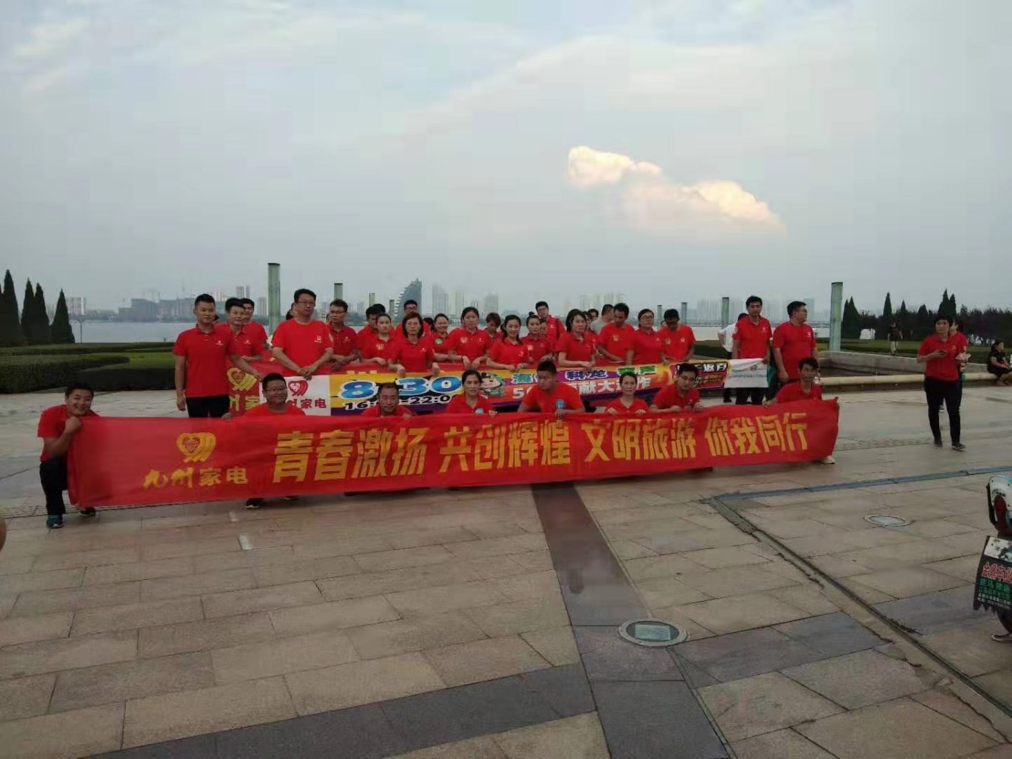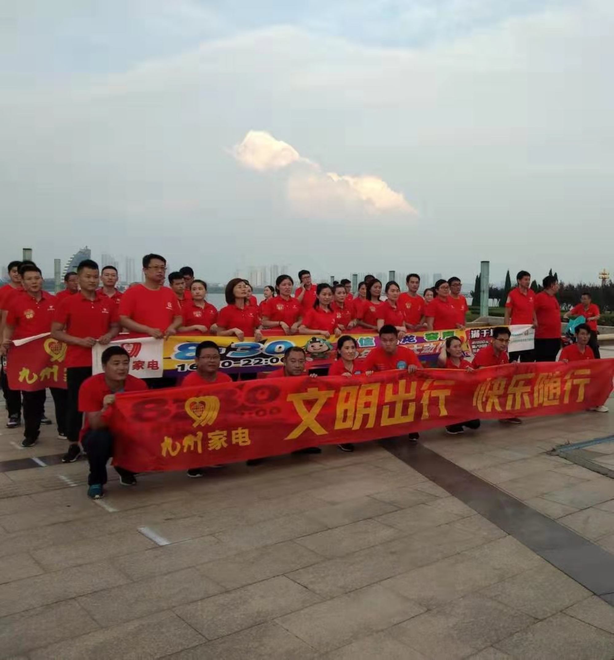 8月28日下午,九州家電“青春九州2019健步PK賽”在沂蒙廣場拉開帷幕,解放路店、楊莊店、北園路店以及后勤部門部分員工和廠家導(dǎo)購員共組建了6支隊(duì)伍參加了PK賽。 比賽正式開始前,參賽選手著裝整齊、精神飽滿的在沂蒙廣場英雄雕塑下集合。各隊(duì)隊(duì)員在隊(duì)長的帶領(lǐng)下,以富有創(chuàng)意和力量的隊(duì)呼為自己的團(tuán)隊(duì)加油助威,振奮人心的口號(hào)聲在沂蒙廣場此起彼伏,鼓舞著每一位參賽隊(duì)員,也吸引了眾多路人駐足觀看。 參賽隊(duì)伍從沂蒙廣場出發(fā),沿濱河岸邊一路行走,到達(dá)鳳凰廣場后再次返回沂蒙廣場。大家結(jié)伴而行,比賽的同時(shí)不忘欣賞沿途美景,呼吸清新空氣,喊著響亮的口號(hào),在一片歡聲笑語中,你追我趕,好不熱鬧。參賽隊(duì)員們本著安全第一、友誼第二、比賽第三的精神,團(tuán)結(jié)一致,互相鼓勵(lì),攜手并進(jìn),最后全部順利抵達(dá)終點(diǎn)。最終,楊莊店團(tuán)隊(duì)獲得健步行PK賽的第一名。 通過舉辦活動(dòng),宣傳綠色出行、文明出行理念,展現(xiàn)了九州家電員工文明健康、積極樂觀的生活態(tài)度。同時(shí),也提高了員工的身體素質(zhì),加深了彼此之間的友誼,進(jìn)一步激發(fā)了員工內(nèi)心昂首奮進(jìn)的激情和對(duì)生活的無限熱愛!(文圖/朱清悅)
