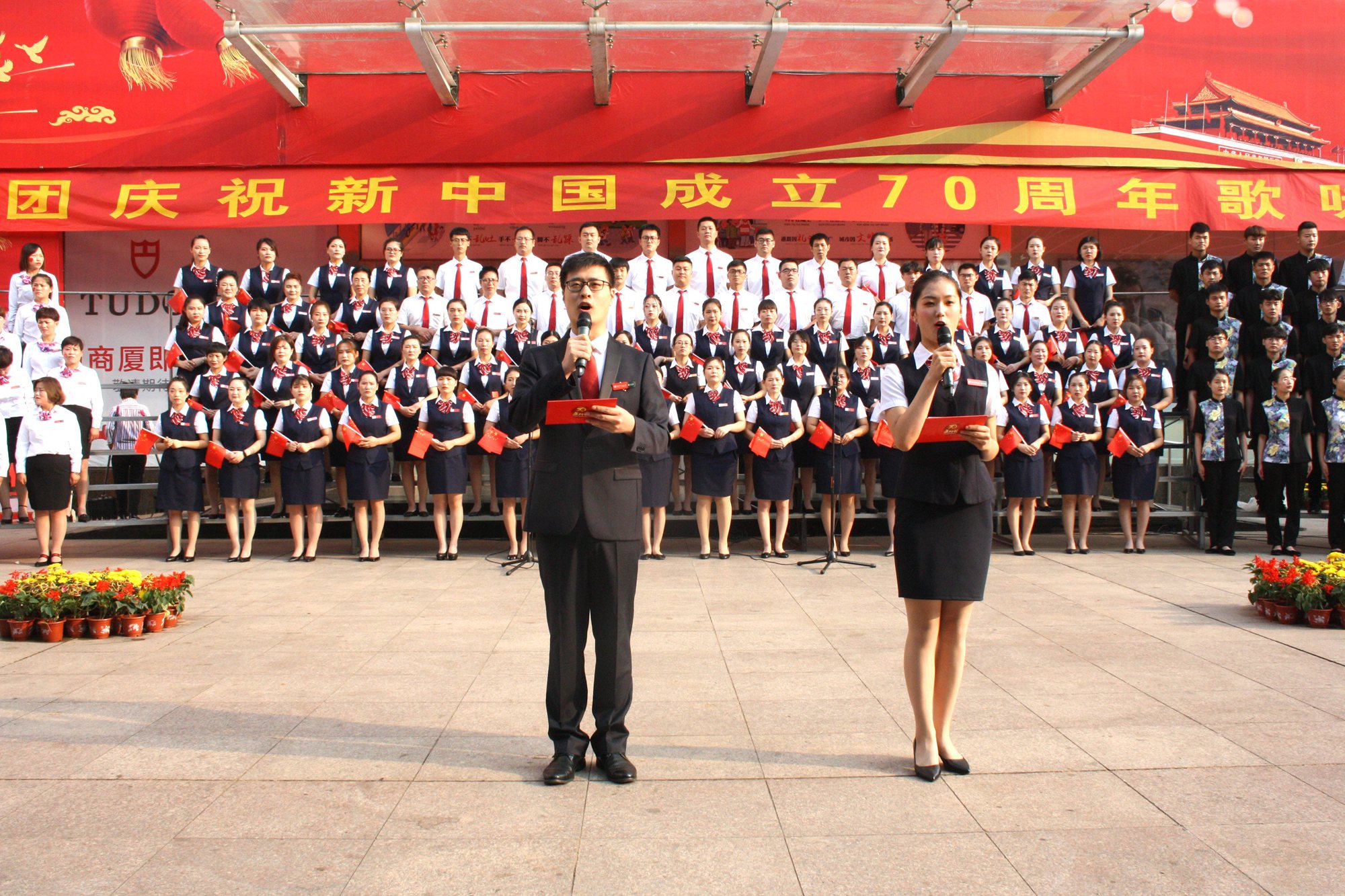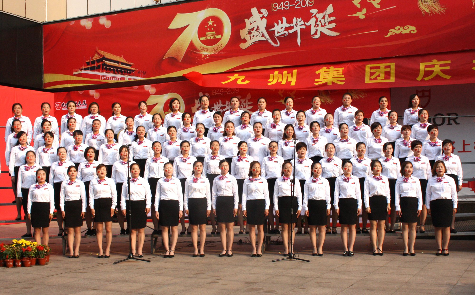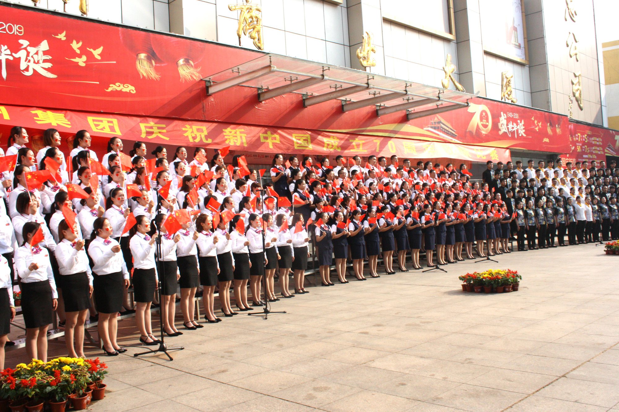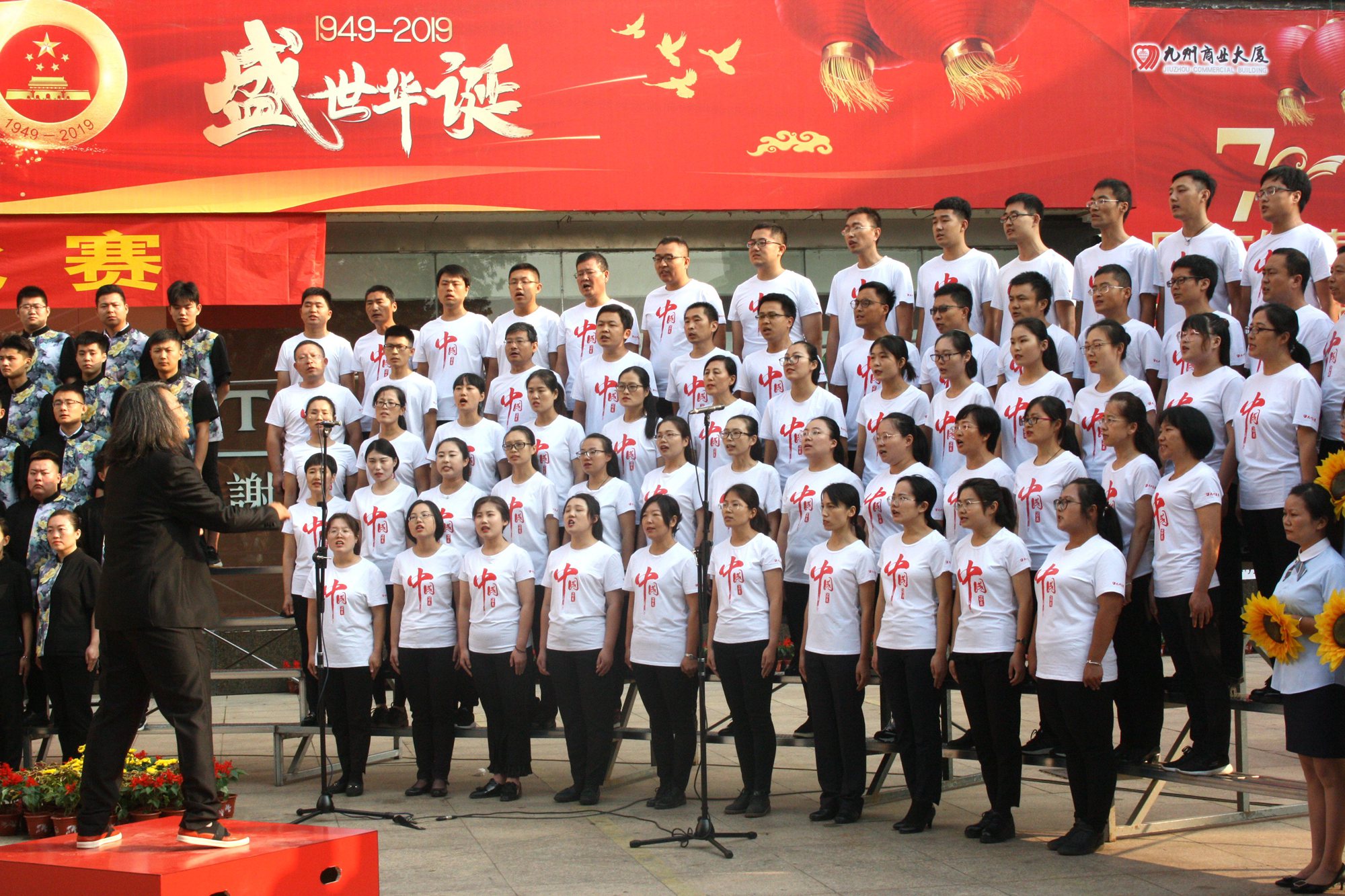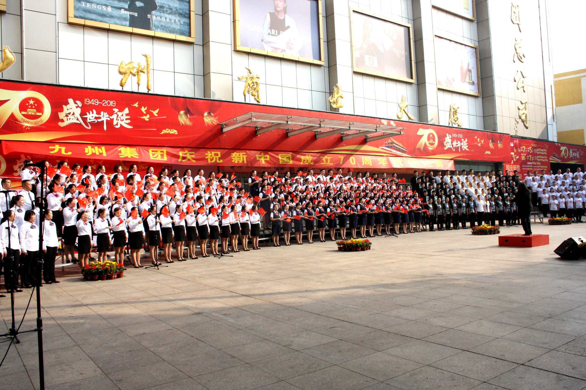 躬逢新時(shí)代,頌歌獻(xiàn)祖國。9月30日早上,集團(tuán)在九州商業(yè)大廈門前廣場舉辦慶祝新中國成立70周年歌詠比賽,來自各經(jīng)營單位和集團(tuán)行政處室的六支代表隊(duì)共計(jì)450余人參加了比賽。