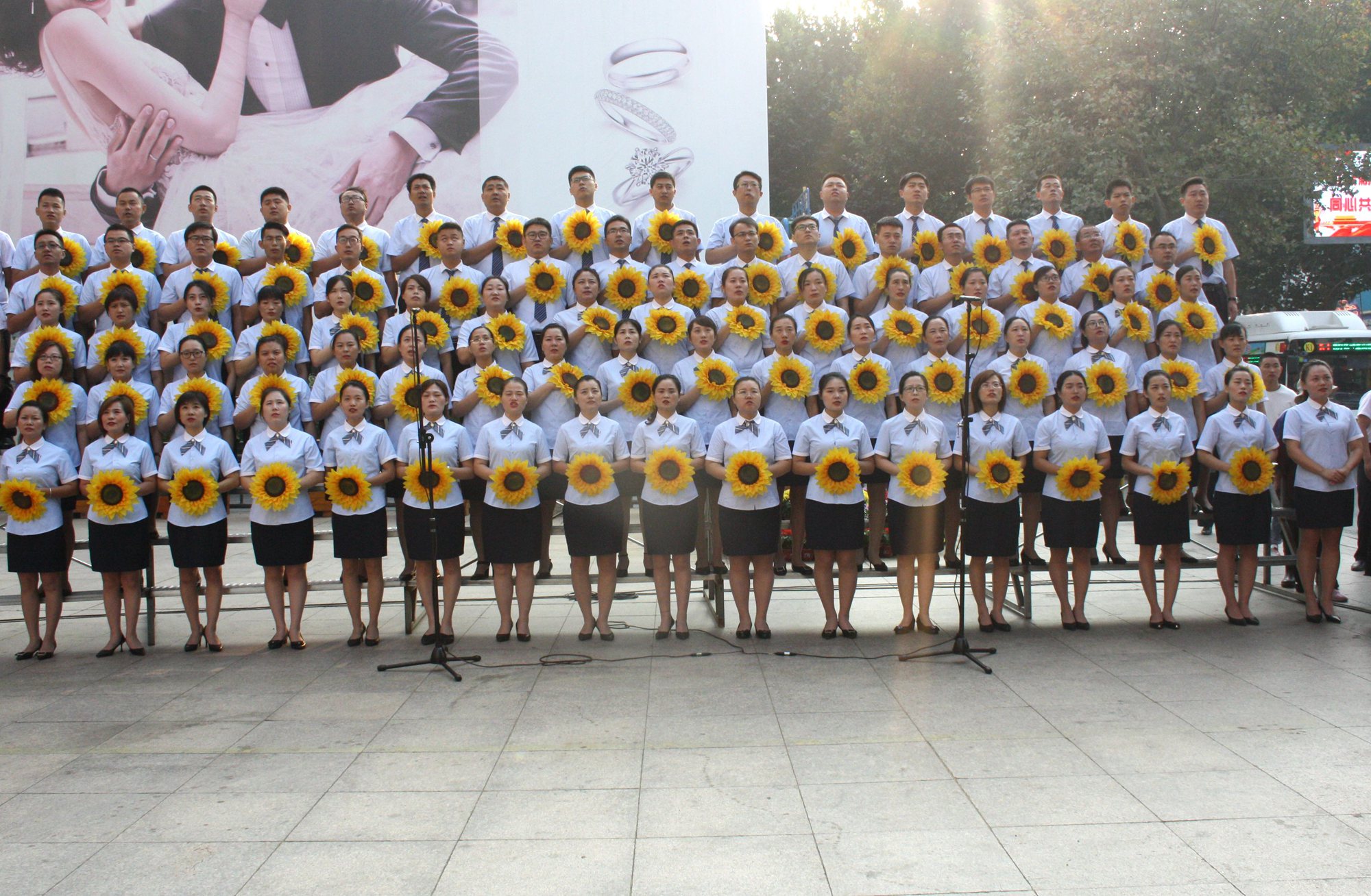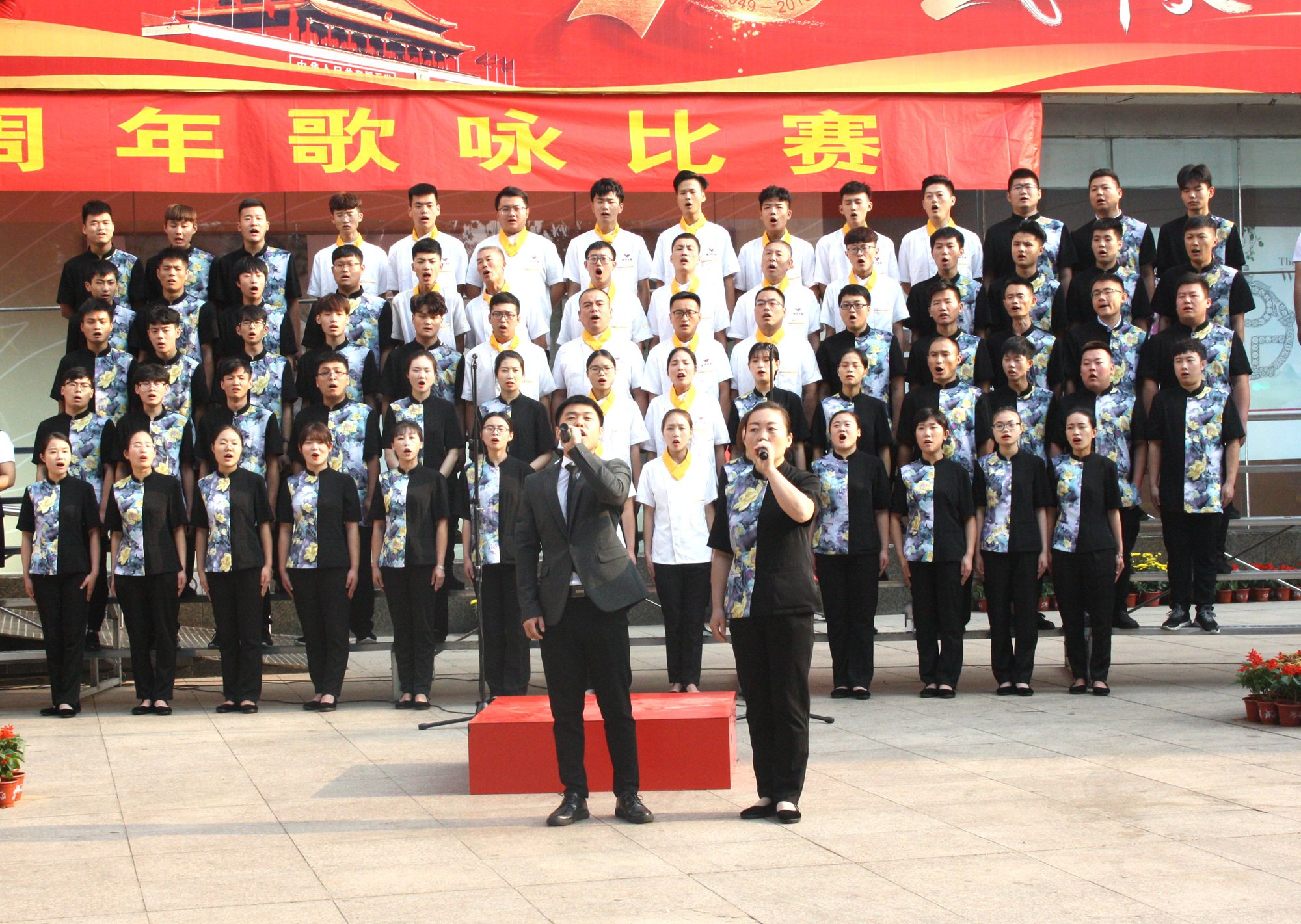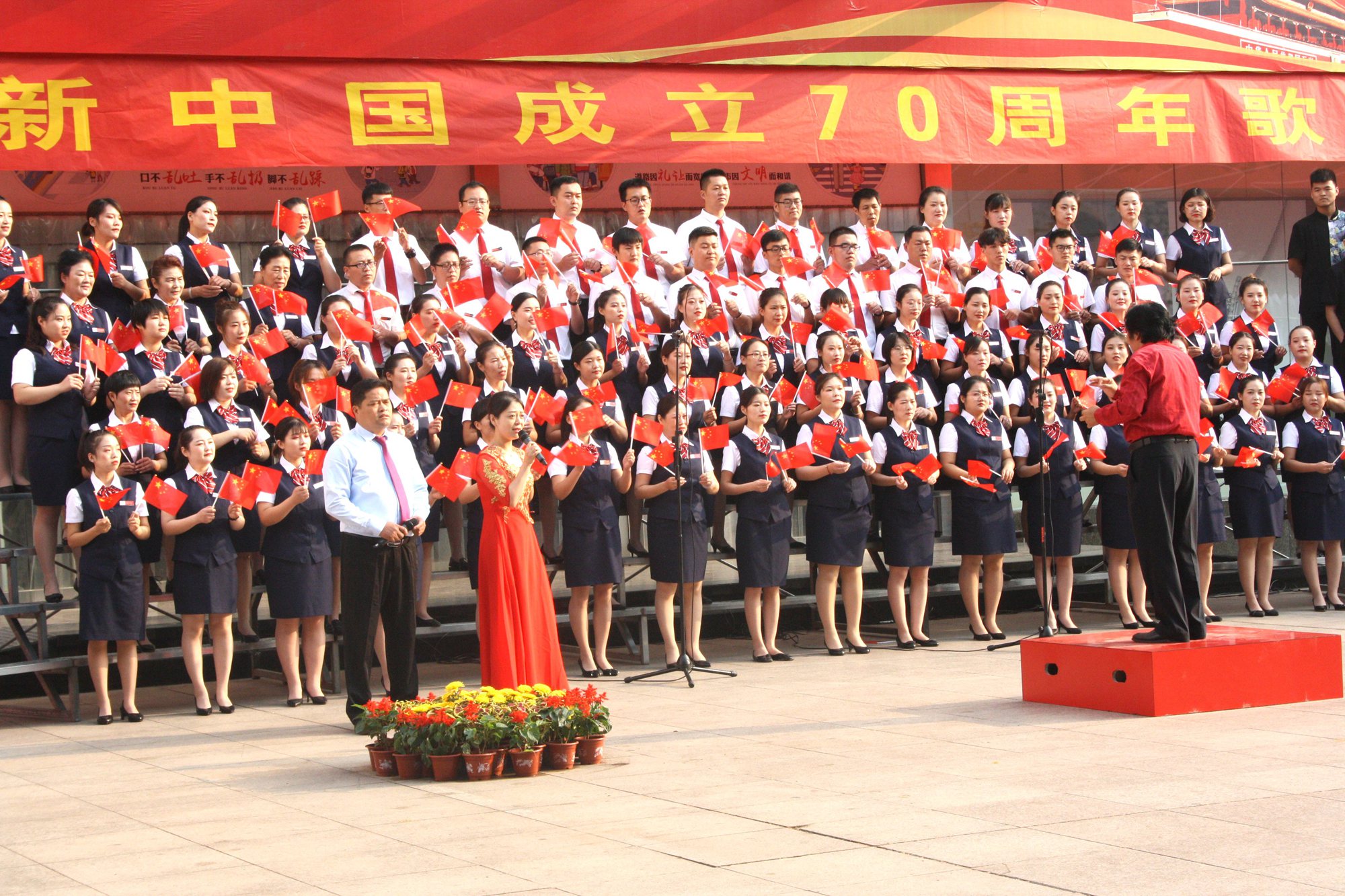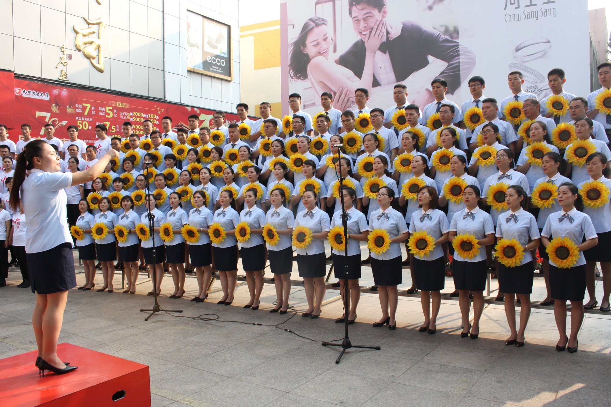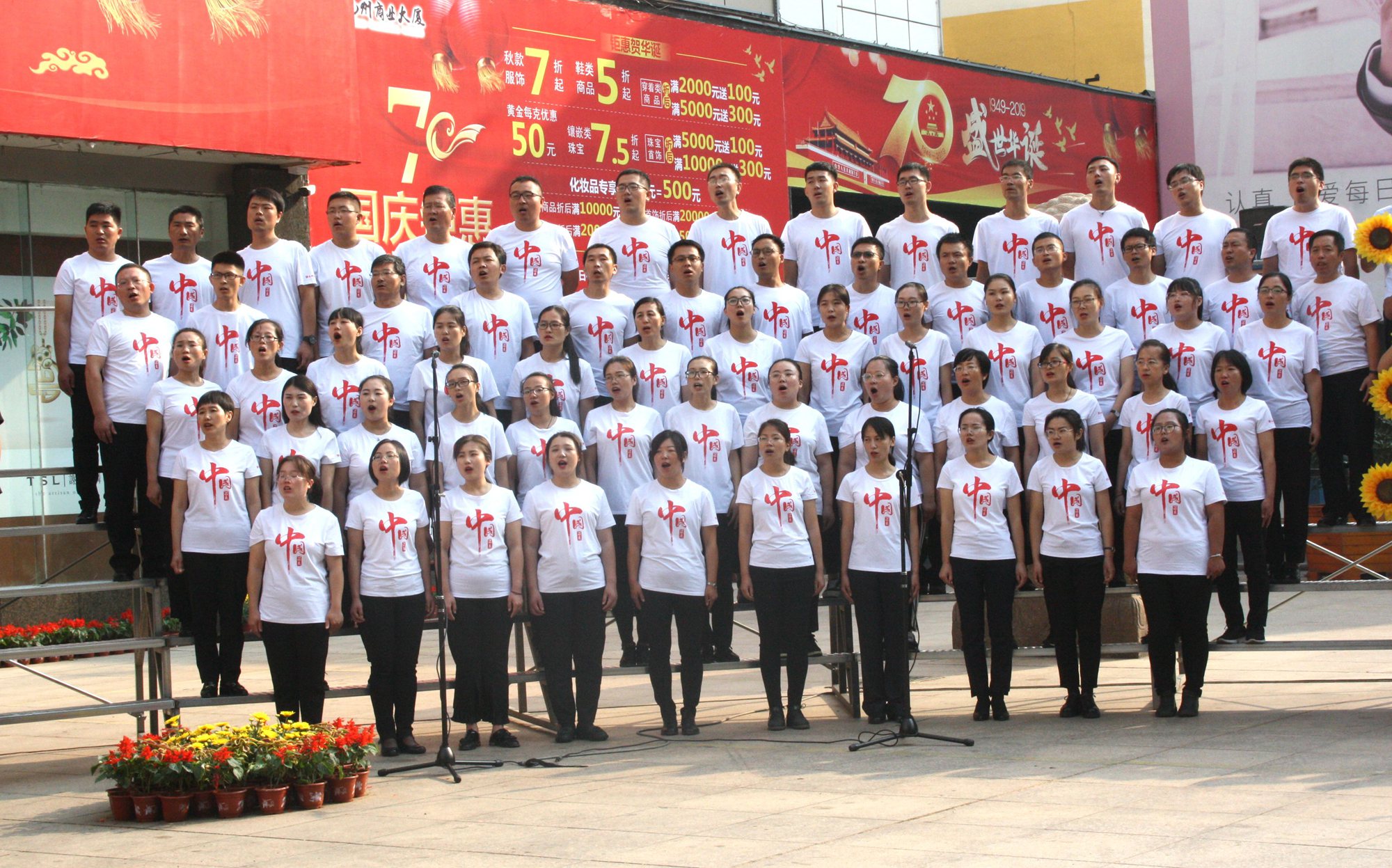 躬逢新時(shí)代,頌歌獻(xiàn)祖國。9月30日早上,集團(tuán)在九州商業(yè)大廈門前廣場舉辦慶祝新中國成立70周年歌詠比賽,來自各經(jīng)營單位和集團(tuán)行政處室的六支代表隊(duì)共計(jì)450余人參加了比賽。