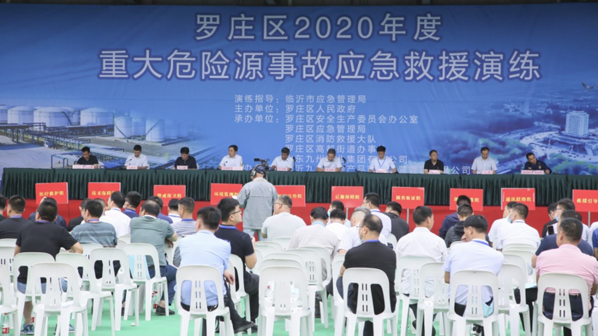 6月30日上午,羅莊區(qū)2020年度重大危險(xiǎn)源事故應(yīng)急救援演練在超市公司九州冷庫舉行,羅莊區(qū)委常委、常務(wù)副區(qū)長張偉峰,區(qū)人大副主任楊翠曉,羅莊區(qū)應(yīng)急管理局局長蘭秀利,應(yīng)急專家朱化雨,集團(tuán)董事長、總經(jīng)理?xiàng)钣罇|出席演練活動。羅莊區(qū)各街鎮(zhèn)分管負(fù)責(zé)人、區(qū)安委會成員單位的分管負(fù)責(zé)人及區(qū)各企業(yè)主要負(fù)責(zé)人等300余人現(xiàn)場觀摩。