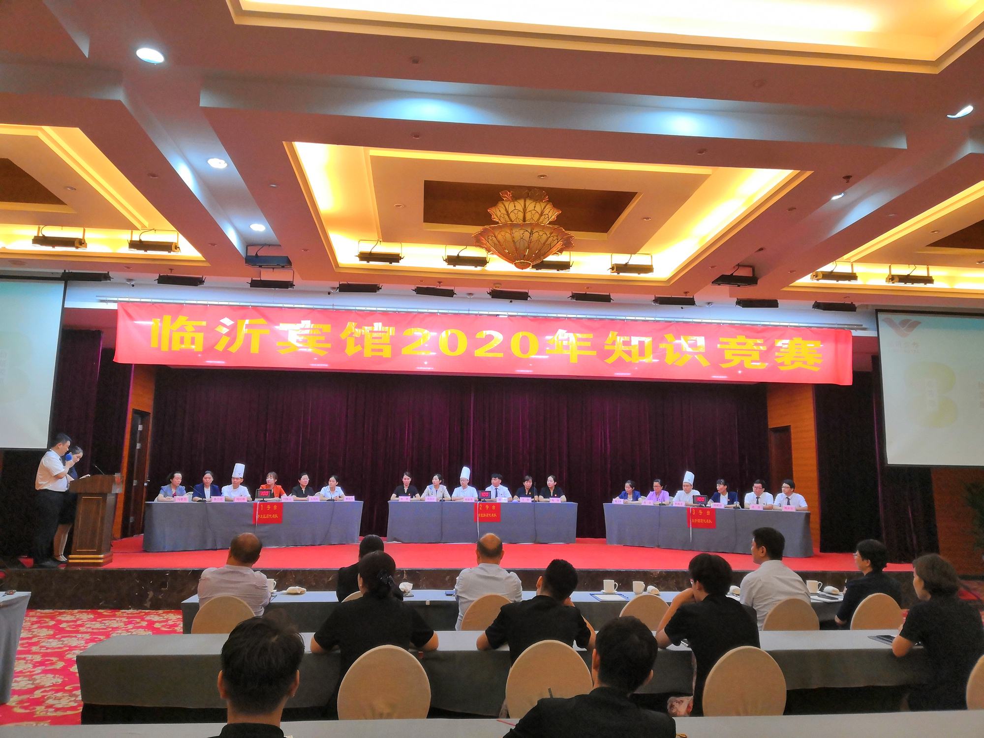 7月31日下午,臨沂賓館2020年知識競賽在沂蒙路店貴賓樓第一會議室舉行,各分店組成的三支代表隊參賽。