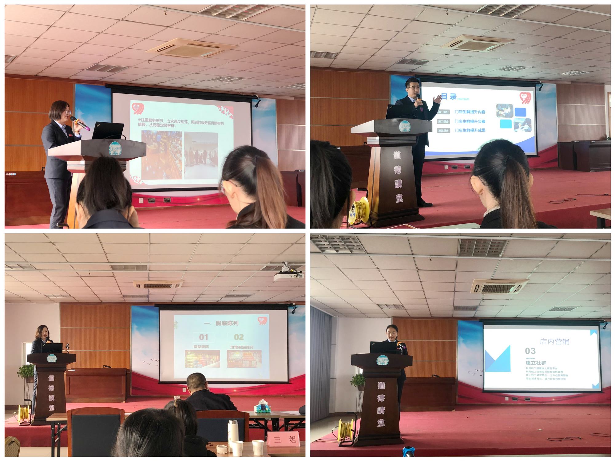 經(jīng)過綜合評比,東華花園店劉洪梅主講的“店內(nèi)營銷”案例獲得一等獎。劉洪梅分享了如何利用微信公眾號、微信群做好社群運營管理等內(nèi)容。購物中心河?xùn)|店二樓孫芳主講的“商品陳列”案例、生鮮營運部肖東主講的“門店生鮮提升”案例獲得二等獎。孫芳主要分享了門店假底陳列、端架情景陳列及異型陳列的作用、制作過程;肖東分享了門店生鮮提升內(nèi)容、提升步驟及部分門店生鮮提升前后對比、銷售提升成果等。購物中心河?xùn)|店一樓王玲主講的“精品百貨現(xiàn)場管理重點”案例、購物中心十里坊店海叔穎主講的“用核心—商品來引流與穩(wěn)流”案例、乳品飲料采購部董磊主講的“直營品牌運作”案例獲得三等獎。王玲分享了在管理中要夯實基礎(chǔ)抓管理,多措并舉創(chuàng)效益;海叔穎分享了利用生鮮核心商品、場內(nèi)與場外結(jié)合、門店出口特賣及用心制作POP等相結(jié)合,充分發(fā)揮核心商品的引流和穩(wěn)流作用;董磊分析了目前直營品牌的概況、運作,并展示了部分優(yōu)秀品牌的銷售情況。本次分享會還評選出優(yōu)秀獎九個,另有兩個評選小組獲得本次分享會的“真知灼見”獎。