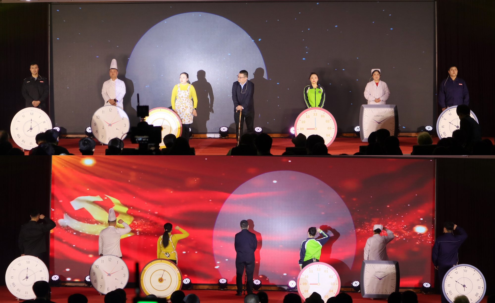 本場晚會的成功舉辦,離不開臺上演出人員的精彩表演,也離不開臺前幕后工作人員的付出;演員們在不影響本職工作的前提下反復訓練、多次彩排,不斷磨合、力求最優(yōu),只為在舞臺上將最好的狀態(tài)和最出色的表演呈現(xiàn)在大家面前;總指揮、總監(jiān)制、節(jié)目創(chuàng)作、節(jié)目編排、會場服務保障、設備、錄像、燈光、音響等所有臺前幕后的工作人員,一次次召開會議商討晚會的每一個細節(jié),相互之間通力合作為這場晚會保駕護航,臺下的掌聲和直播間破56萬的點贊數(shù),是對他們辛勤付出的最大支持和鼓勵。