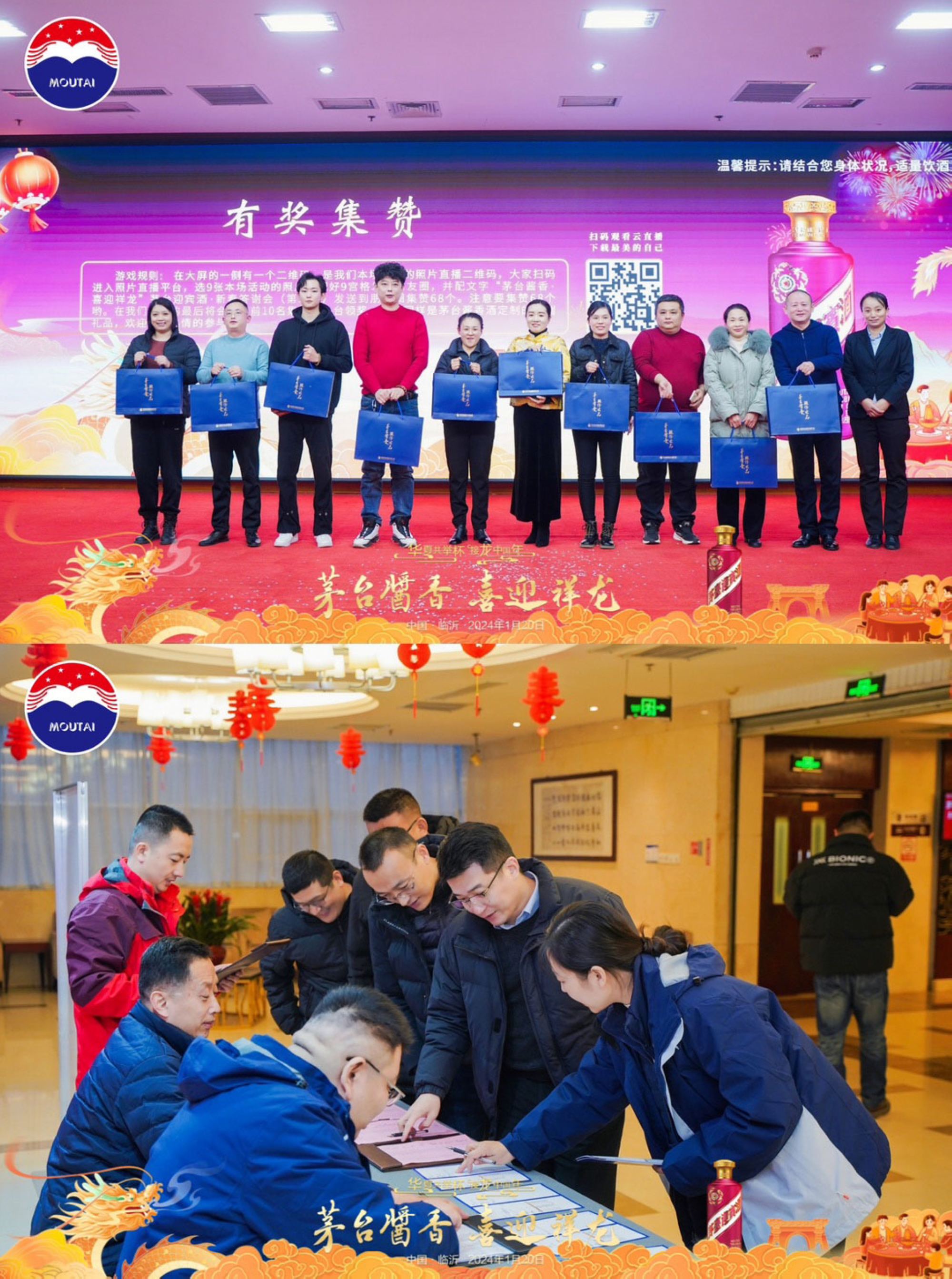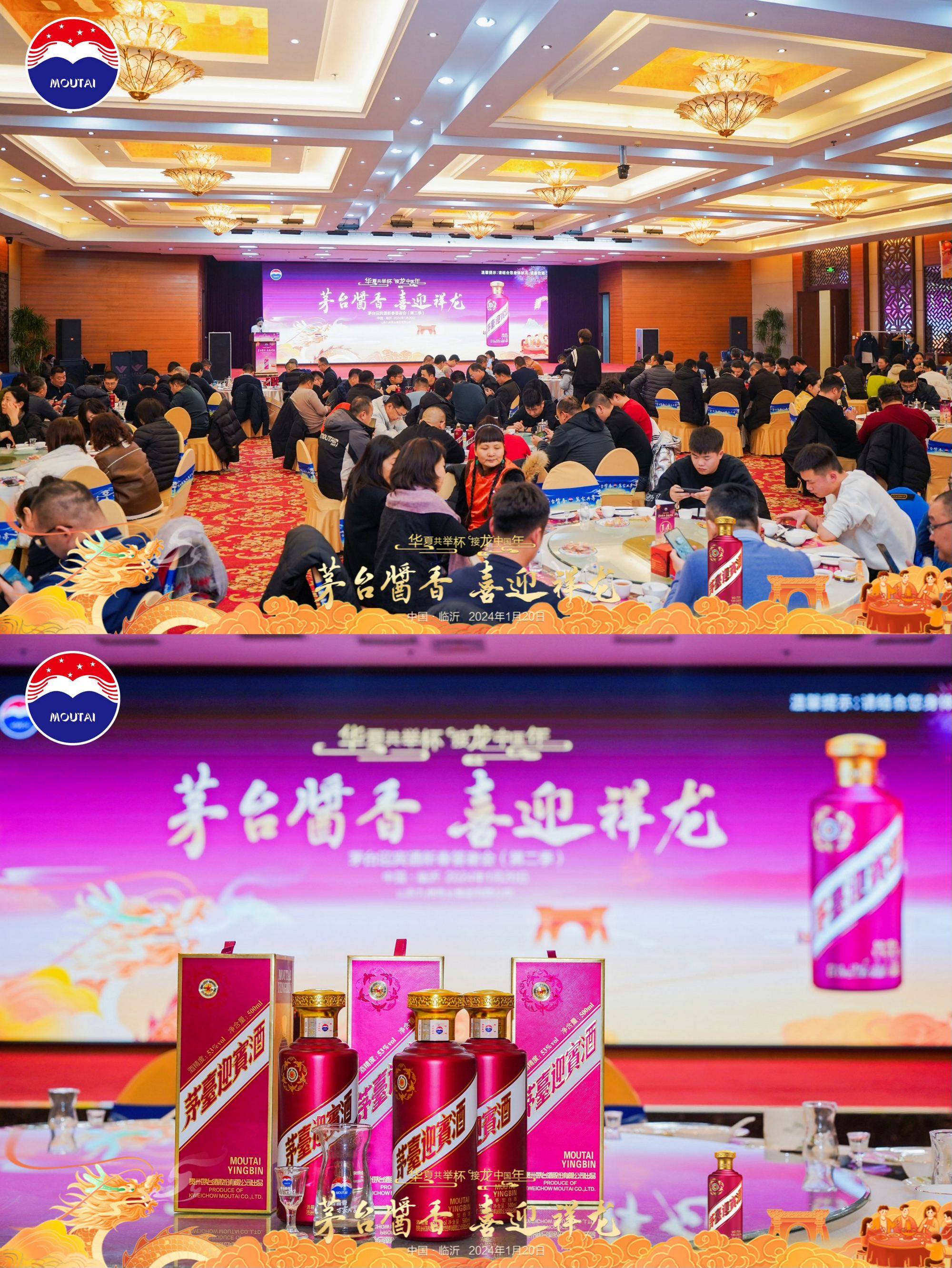 1月20日晚上,超市公司在臨沂賓館沂蒙路店舉辦茅臺迎賓酒“茅臺醬香 喜迎祥龍”新春答謝會。茅臺醬香酒公司領導、超市公司領導及核心終端消費者150余人參加。