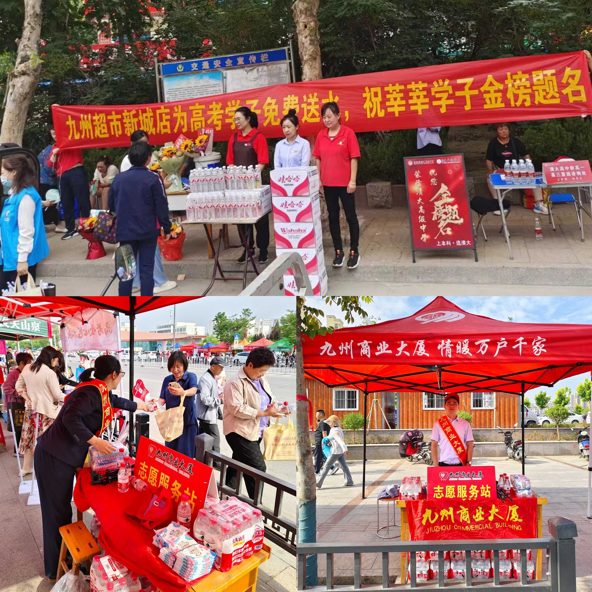 九州商業(yè)大廈各部門也積極組織員工到高考考點(diǎn)提供送水服務(wù),在炎炎夏日為考生及家長(zhǎng)們送上一絲清涼,獻(xiàn)上一份愛心。