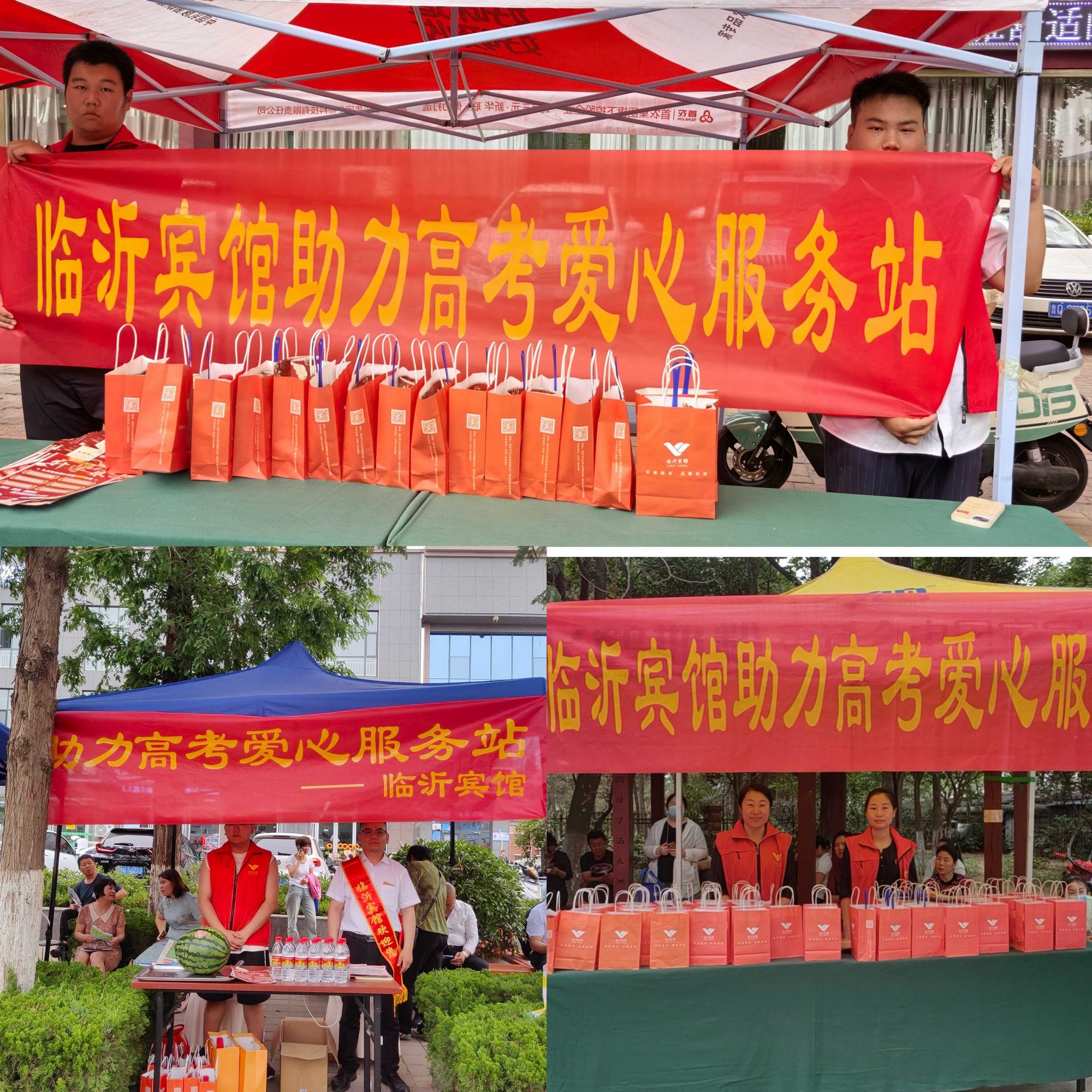 臨沂賓館組織員工分批次到臨沂一中、二中、四中、七中、二十四中等考點(diǎn)外設(shè)立 “愛心服務(wù)站”,為考生及家長(zhǎng)發(fā)放臨沂賓館自制的粽子、五彩手鏈和香囊,并提供礦泉水、扇子、西瓜、愛心手提袋等物品,在炎炎夏日里為陪考家長(zhǎng)送去一份清涼和節(jié)日祝福,給考生加油打氣。