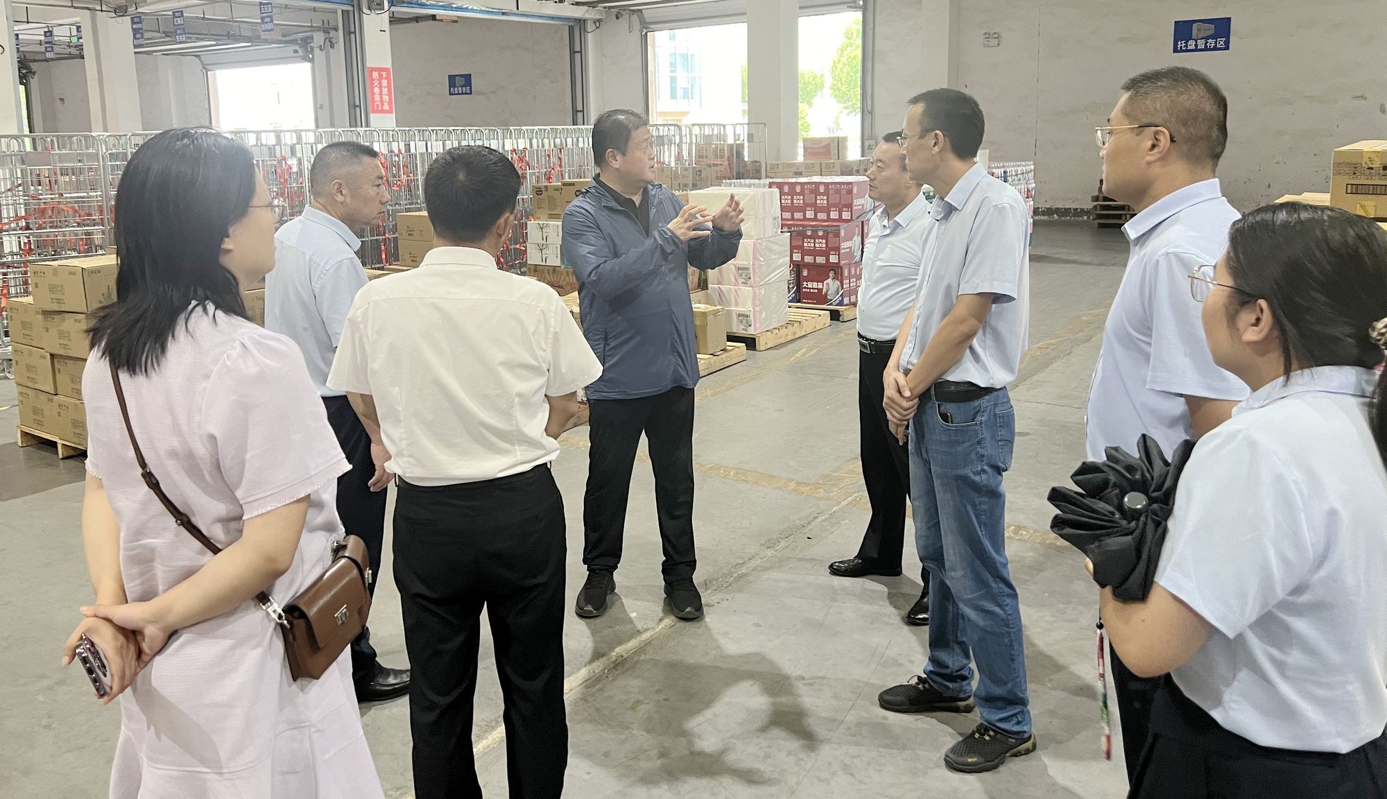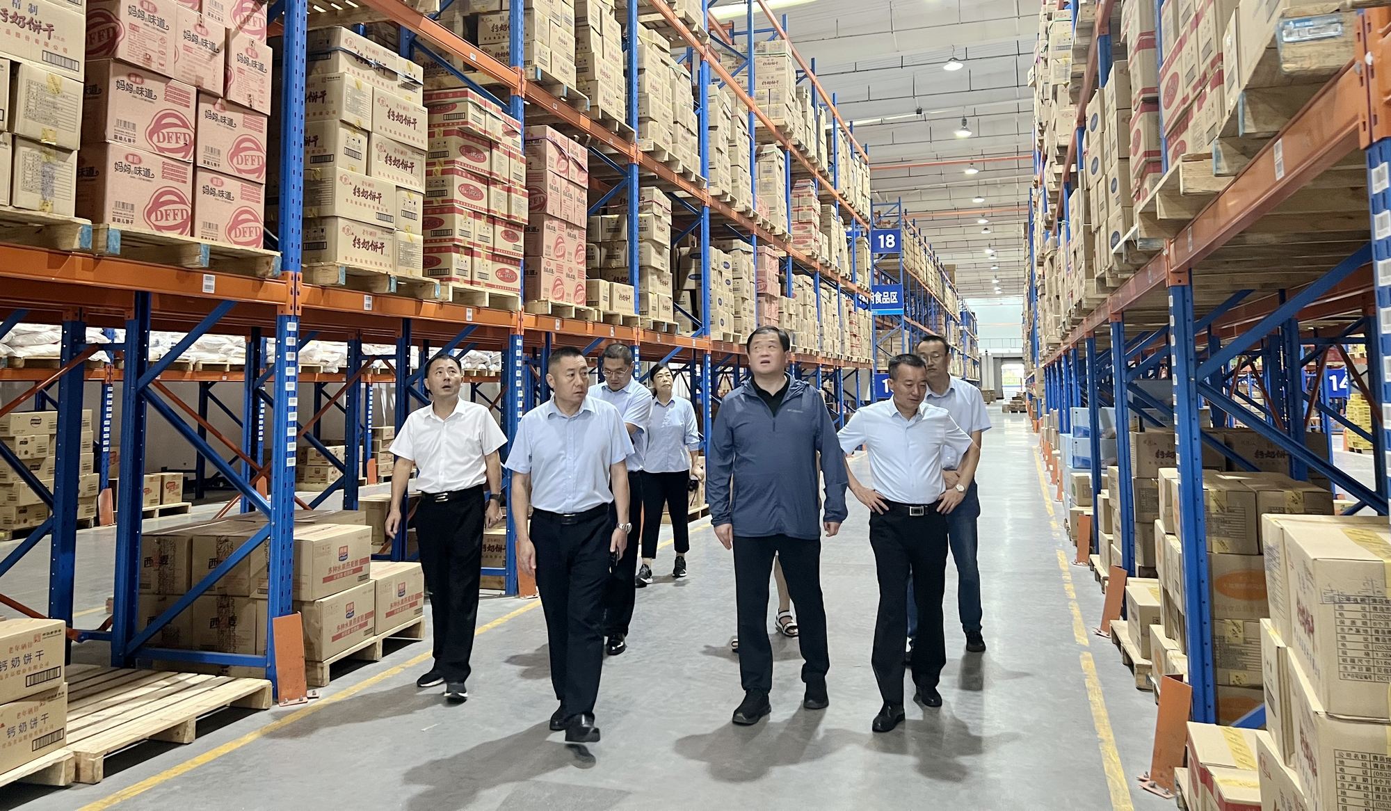 8月27日下午,省商務(wù)廳消費(fèi)促進(jìn)處二級調(diào)研員王春報(bào)等領(lǐng)導(dǎo)一行到九州集團(tuán)配送中心巡查應(yīng)急物資儲備情況,超市公司總經(jīng)理?xiàng)钪稳、副總?jīng)理?xiàng)钣缽?qiáng)陪同。