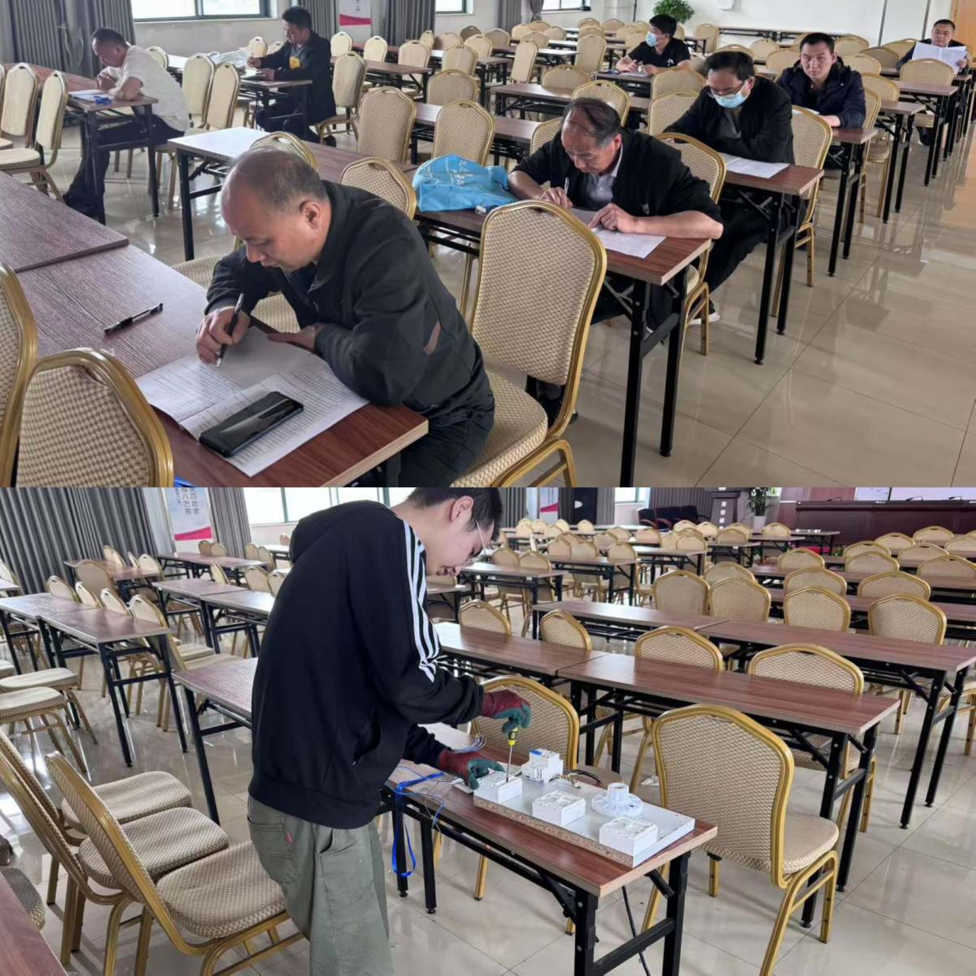 比賽設(shè)置理論考試和實(shí)操兩個(gè)環(huán)節(jié),理論考試涵蓋維修原理、安全規(guī)范、故障診斷等基礎(chǔ)維修知識(shí),全面檢驗(yàn)選手的維修知識(shí)儲(chǔ)備;實(shí)操主要通過(guò)雙開(kāi)雙控線路的接線考察選手接線技能及操作規(guī)范,通過(guò)兩輪綜合比拼,最終雙月園路店王寶強(qiáng)、維修部李愛(ài)靜、王平莊店張建彬獲得綜合前三名。