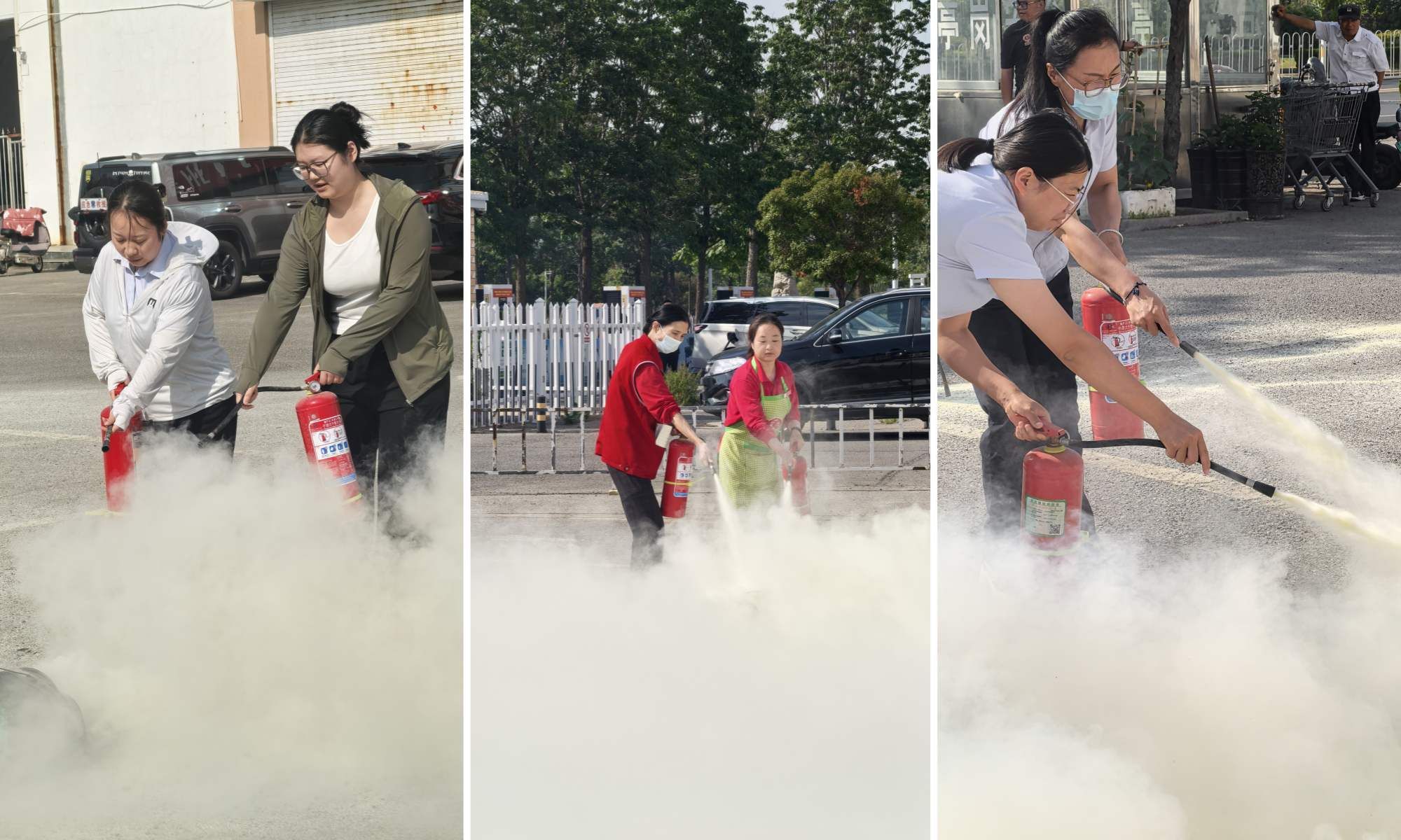 演練中,楊莊店安保部經(jīng)理郭磊通過“提、拔、握、壓”四字口訣,向大家詳細(xì)講解了滅火器的使用方法,讓員工快速掌握操作要點及技巧,隨后大家分組進行滅火器滅火實操演練。此外,通過模擬火災(zāi)場景,郭磊指導(dǎo)大家正確的疏散逃生方法,確保每一名員工在遇到突發(fā)險情時能迅速、有序撤離,保障人身安全。