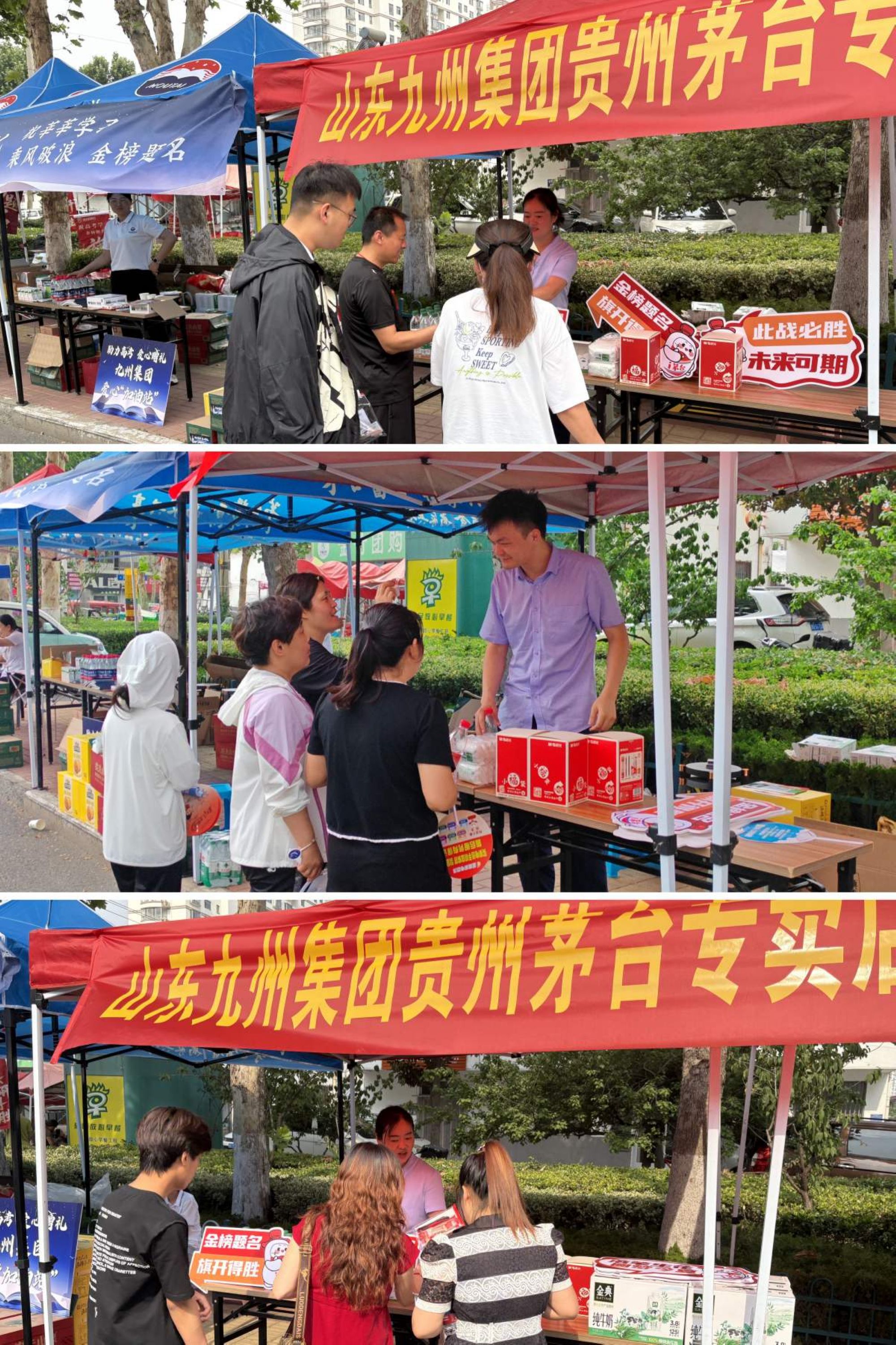 沂蒙路店在臨沂一中、臨沂二中及臨沂七中等考點設置了6個愛心助力高考服務站,免費為考生及家長提供礦泉水、西瓜、手工小點心等降溫解渴的物品。