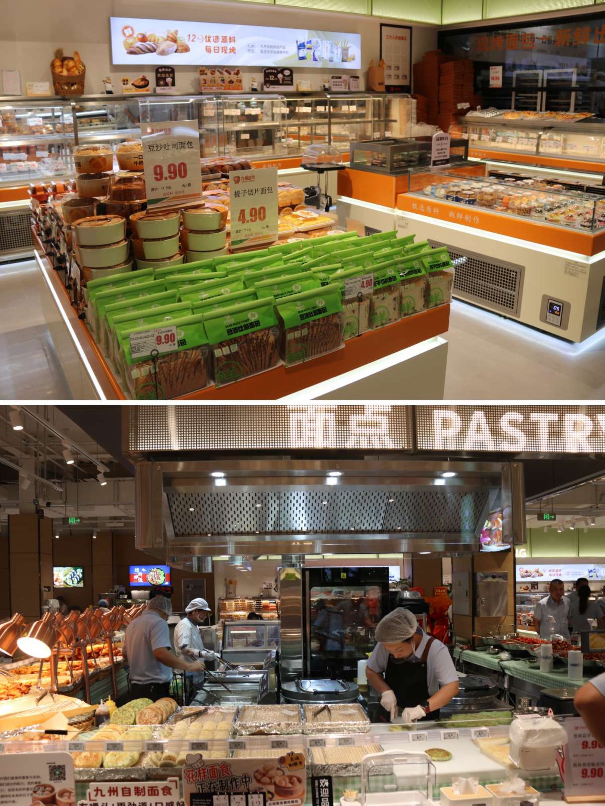 本次門店調改大力投入自營烘焙、面食和熟食;在店內開設了九州自營烘焙面包房,現(xiàn)場加工制作烘焙品類130多種;門店對面食、熟食及部分小吃實行自營,每日可提供300多種豐富多樣的品類,能夠有效滿足顧客各種消費需求。本次門店調改還顯著豐富了即食選擇,新增加了熱鹵、米線、面條、關東煮等100多款現(xiàn)制美食,新鮮供應,當日出清,確保食品安全,讓顧客買得放心,吃得安心。