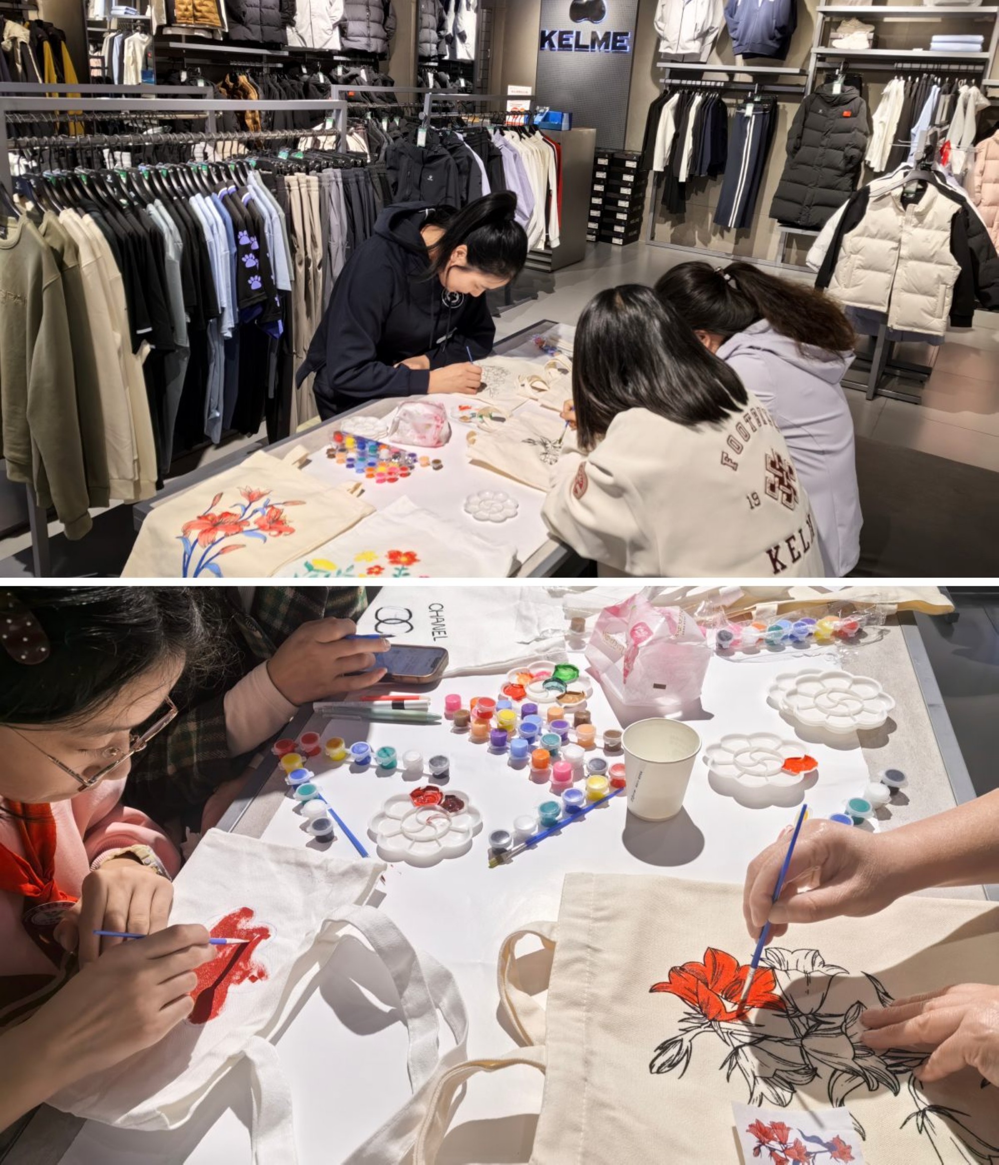 秋意正濃,藝趣時光,10月29日下午,九州商業(yè)大廈在解放路店五樓商場卡爾美(KELME)專柜開展了一場充滿創(chuàng)意與溫情的“秋日序曲”彩繪帆布包手作沙龍活動。
