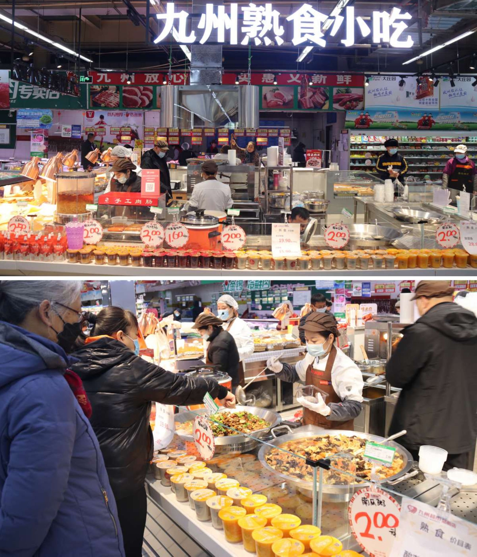為更好地適配快節(jié)奏的現(xiàn)代生活,現(xiàn)場加工區(qū)引入全新加工設(shè)備,拓寬經(jīng)營品類,新增粥品、小炒、盒飯、炸貨等多元自營餐食,增加烤雞、豬頭肉、牛肉等自營熟食,提高鮮制現(xiàn)售商品占比,更好地滿足顧客日常飲食需求。
