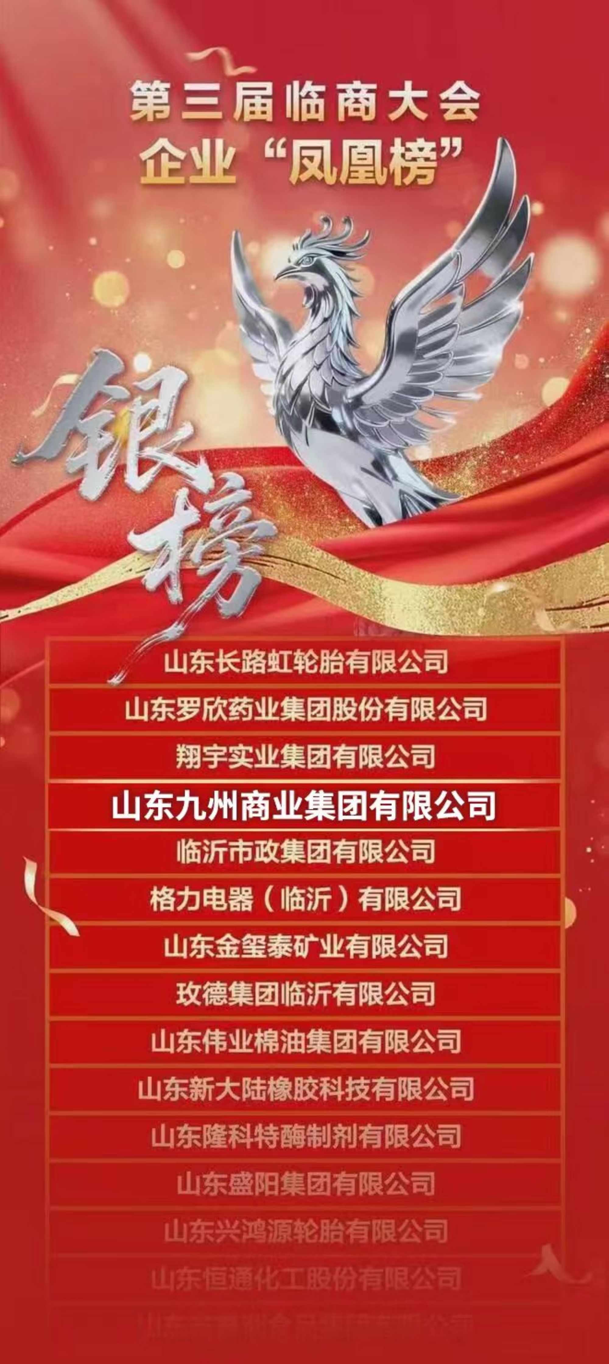 九州集團(tuán)再度榮登臨沂市企業(yè)“鳳凰銀榜”