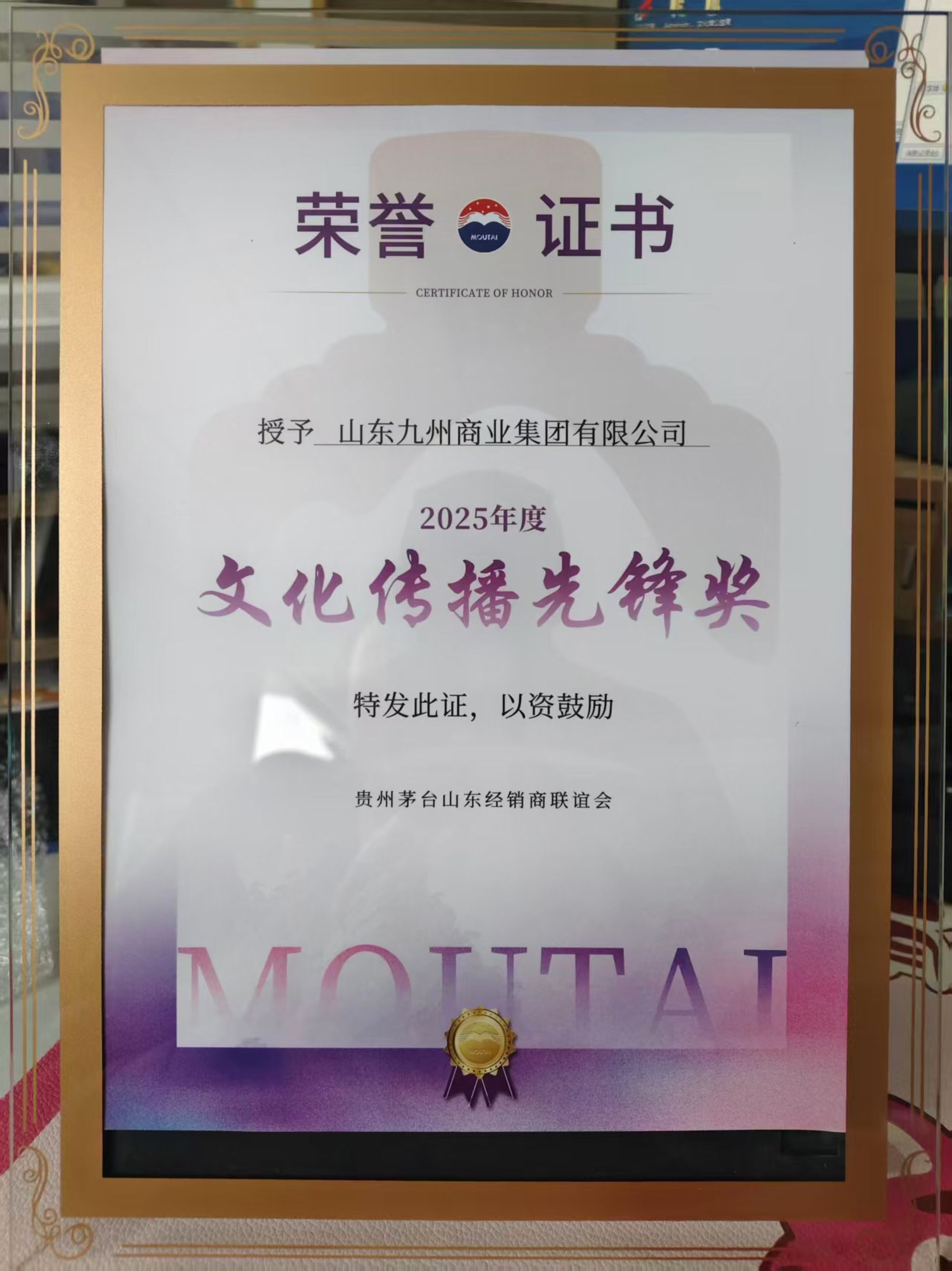 近日,貴州茅臺(tái)山東經(jīng)銷商聯(lián)誼會(huì)在濟(jì)南順利召開,山東九州商業(yè)集團(tuán)有限公司被授予貴州茅臺(tái)“2025年度文化傳播先鋒獎(jiǎng)”。