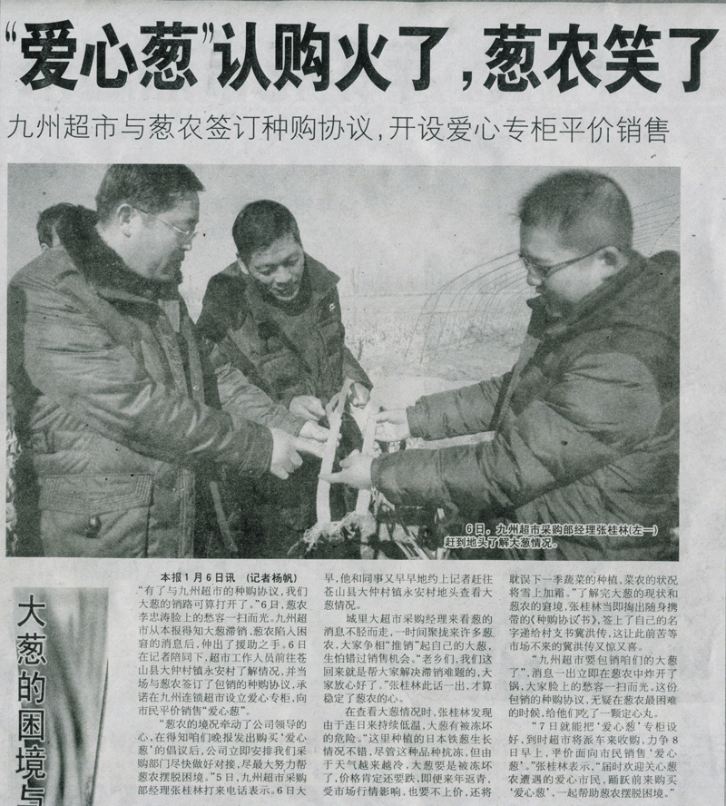 購協(xié)議》,并在所屬超市門店設(shè)立“愛心蔥”專柜。2011年1月7日的《沂蒙晚報》刊發(fā)了專稿予以報道。以