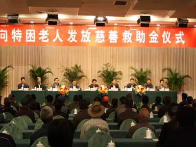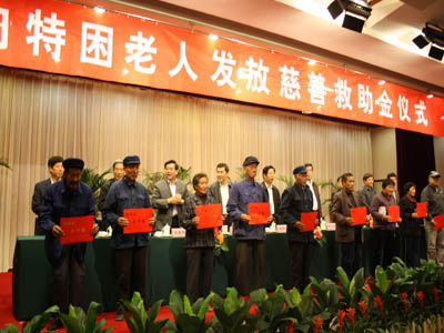 在我省第23個老人節(jié)和“九九”重陽節(jié)之際,集團(tuán)與市老齡委、市慈善總會、臨沂日報報業(yè)集團(tuán)等單位聯(lián)合舉行了“向特困老人發(fā)放慈善救助金”活動;顒由蠟100名孤寡特困老人和100名百歲老人每人發(fā)放了1000元的救助慰問金。 作為老齡人口大市,我市重視發(fā)展老齡事業(yè),通過加強(qiáng)領(lǐng)導(dǎo),完善社會保障體系等措施,在全社會營造了濃濃的敬老愛老助老氛圍。眾多愛心企業(yè)積極參與,推動了我市老齡事業(yè)的發(fā)展。作為“臨沂市十大愛心企業(yè)”,集團(tuán)積極參與、支持全市老齡事業(yè)的發(fā)展,用實際行動扶老、助老,向老年人奉獻(xiàn)愛心。 多年來,集團(tuán)在事業(yè)發(fā)展的同時,始終牢記報效國家、回饋社會、投身公益的責(zé)任,積極投身慈善事業(yè)。通過開展慈善救助、“慈心一日捐”、“送溫暖”等一系列活動,積極參與到各類助學(xué)、助殘、賑災(zāi)、濟(jì)困等公益事業(yè)中來。幾年來,集團(tuán)在各項公益活動累計捐款捐物達(dá)數(shù)百萬元,為推動全市慈善事業(yè)的發(fā)展做出了重要貢獻(xiàn)。 “老吾老以及人之老”,關(guān)愛老人是我們中華民族的傳統(tǒng)美德,也是我們?nèi)鐣墓餐?zé)任。集團(tuán)此次向特困老人發(fā)放慈善救助金活動是集團(tuán)用實際行動關(guān)愛老人的具體體現(xiàn),有利于喚起全社會對尊老敬老的重視,有利于在全社會樹立尊老、敬老、愛老、助老的良好風(fēng)氣。 市委常委、市總工會主席林祥余,市人大顧問、市慈善總會名譽會長李寶智,市政府副秘書長沈孝生,市民政局局長姜新利,市老齡辦主任聶成新,市慈善總會副會長楊本渠,集團(tuán)董事長楊沂城,黨委書記王佐文出席儀式并在主席臺就坐。