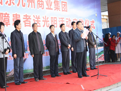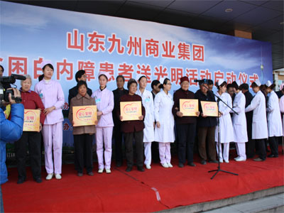 3月29日,山東九州商業(yè)集團(tuán)為貧困白內(nèi)障患者送光明活動在市人民醫(yī)院眼科門診樓前舉行啟動儀式。該活動由集團(tuán)出資60萬為我市600名貧困白內(nèi)障患者提供免費(fèi)手術(shù)。臨沂市慈善總會副會長楊本渠、集團(tuán)董事長楊沂城及市有關(guān)單位領(lǐng)導(dǎo)出席啟動儀式。