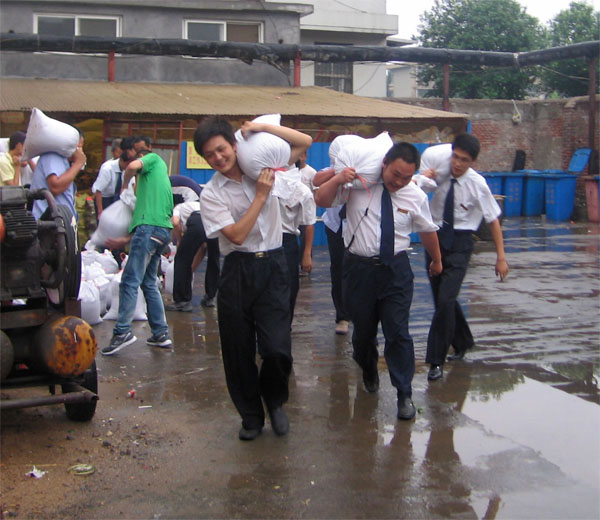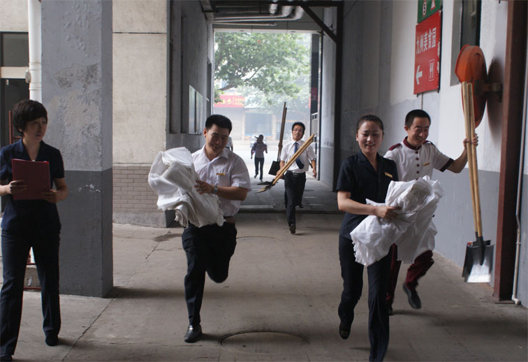 據(jù)市氣象局預(yù)測和市防汛指揮部通報(bào),今年夏季我市降水量較常年偏多,強(qiáng)降雨突發(fā)幾率較高,防汛形勢不容樂觀。在汛期來臨之際,臨沂賓館高度重視防汛工作,召開了以防汛為重點(diǎn)的安全專題會議。在防汛領(lǐng)導(dǎo)小組統(tǒng)一安排下,防汛搶險(xiǎn)突擊隊(duì)于6月、7月下旬組織了兩次次防汛搶險(xiǎn)實(shí)戰(zhàn)演練。 演練假設(shè)7、8月某日,暴雨來襲,賓館院內(nèi)積水成河,隨時(shí)可能流入地下停車場,隨著水位不斷升高,極有可能侵入客房等經(jīng)營部位。汛情就是命令,臨沂賓館立即啟動防汛預(yù)案,迅速集結(jié)搶險(xiǎn)隊(duì)員,僅用時(shí)30分鐘就將險(xiǎn)情控制住。這次防汛搶險(xiǎn)實(shí)戰(zhàn)演練,大大提高了搶險(xiǎn)隊(duì)員的實(shí)戰(zhàn)能力,為我館防汛工作打下了堅(jiān)實(shí)的基礎(chǔ)。