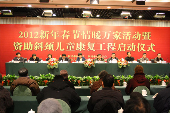 12月10日,2012年臨沂市新年春節(jié)情暖萬家活動啟動儀式在臨沂賓館舉行,活動現(xiàn)場同時舉行了斜頸兒童康復(fù)工程啟動儀式,并為困難家庭發(fā)放了資助金。市政協(xié)副主席趙愛華,市直有關(guān)部門領(lǐng)導(dǎo)出席啟動儀式。