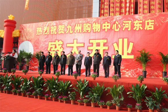 2011年12月23日,九州購物中心河?xùn)|店舉行開業(yè)慶典,河?xùn)|區(qū)委書記王曉軍、區(qū)人大、區(qū)政府、區(qū)政協(xié)等領(lǐng)導(dǎo)與集團(tuán)領(lǐng)導(dǎo)共同為九州購物中心河?xùn)|店開業(yè)剪彩。九州購物中心河?xùn)|店位于河?xùn)|區(qū)黃金地段,經(jīng)營面積近4萬平方米,定位于以中高檔百貨商場與超市業(yè)態(tài)相結(jié)合的綜合性購物中心。