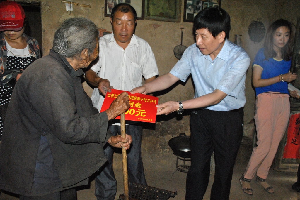“千村萬(wàn)戶慈善行”活動(dòng)由九州集團(tuán)出資20萬(wàn)元贊助,旨在讓那些行動(dòng)不方便、信息不靈通、身處邊遠(yuǎn)村、貧困村的病災(zāi)戶、五保戶、殘疾人、孤寡老人等困難群體,能夠?qū)崒?shí)在在地得到慈善救助,真正使慈善事業(yè)成為政府社會(huì)保障體系的重要組成部分;顒(dòng)將分階段(年度)進(jìn)行,第一活動(dòng)階段時(shí)間為6月下旬至12月下旬,從6月22日開始,每周利用一天的時(shí)間,走訪1至3個(gè)村,每個(gè)村至少走訪10個(gè)困難家庭,并現(xiàn)場(chǎng)為這10個(gè)困難家庭發(fā)放由山東九州商業(yè)集團(tuán)有限公司和市慈善總會(huì)提供的現(xiàn)金1000元及部分生活用品。