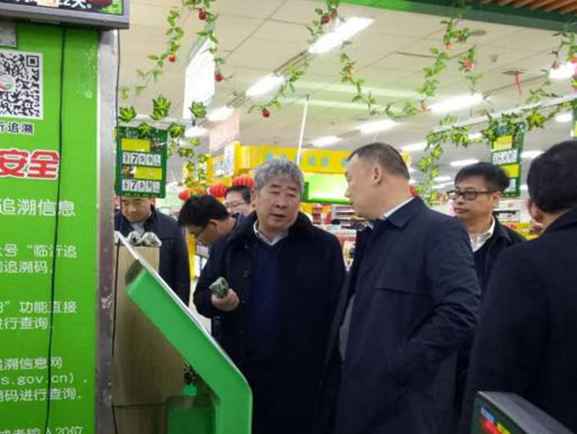 考察組一行在購物中心齊魯園店先后參觀了果蔬區(qū)和畜產(chǎn)區(qū),在現(xiàn)場深入了解九州集團肉菜追溯體系建設實施情況,并現(xiàn)場通過手機掃描二維碼,查詢商品來源。考察組一行對九州集團在肉菜追溯體系建設方面做的大量工作給予了充分肯定。(購物中心齊魯園店 梁兵)