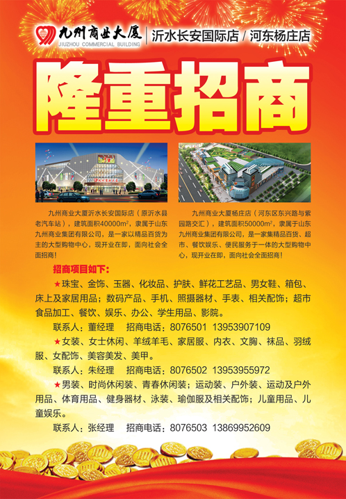 沂水長(zhǎng)安國(guó)際店 河?xùn)|楊莊店隆重招商